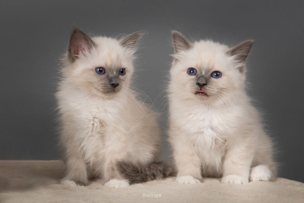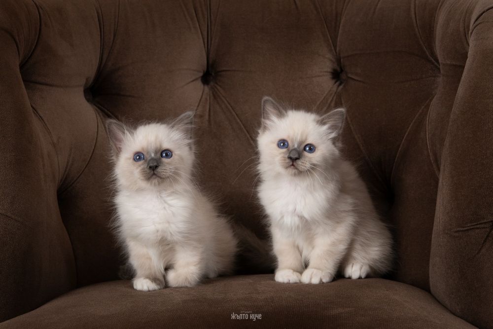 Предлагаме селектирани мъжки и женски котенца на 3 месеца от породата Бирманска свещена котка – една от най-елегантните и ценени породи в света. Отличават се със сапфирено сини очи, копринена козина и характерните бели „ботушки“, символ на чистота и благородство.