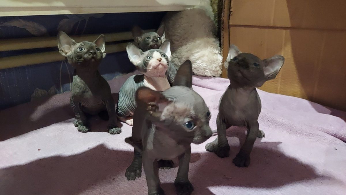 Канадські кошенята породи сфінкс, народжені 22 грудня 2025 року. Їх батьки — 3 дівчинки та 2 хлопчики. Вони будуть доступні для продажу з 20 лютого. Ціна кошенят — 2000 грн.