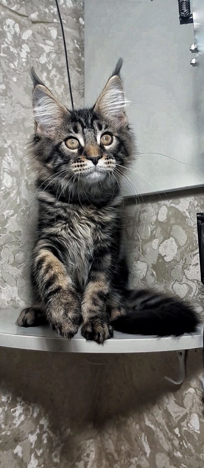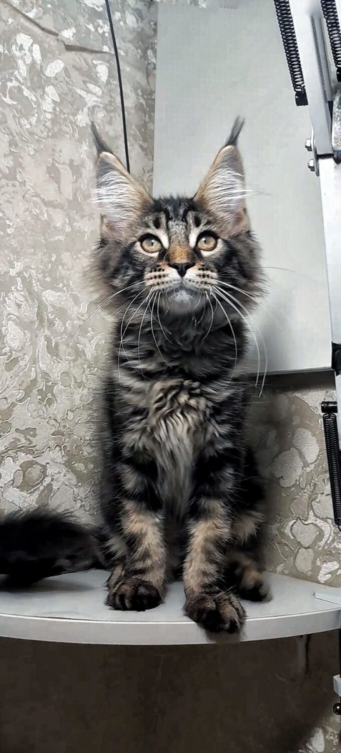 Шукаєте вірного друга, який наповнить дім теплом і радістю? Знайомтеся з чистопородною кішечкою Мейн-Кун – втіленням грації, інтелекту та ніжності. Вона розумна, як справжній дослідник, грайлива, і ласкава, завжди готова до обіймів та муркотіння. Її міцна статура, густа блискуча шерсть, виразні пензлики на вушках і довгий пухнастий хвіст роблять її справжньою зіркою породи – такою, що привертає увагу та викликає захоплення.