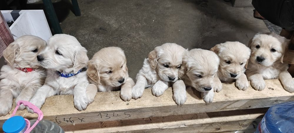 На вашето внимание Чистокръвни кученца Голдън ретривър/Golden retriever от породисти родители, кученца, които са гледани с много любов и грижа . След предстояща другата седмица последна ваксинация и обезпаразитяване, също и издаване на паспорти….Ще бъдат готови за вземане и посрещане на новите си стопани. Много игриви и в перфектно здраве…Умни и всеотдайни. Перфектни за подарък и за сродна душа..4 вече са резервирани…остават 3