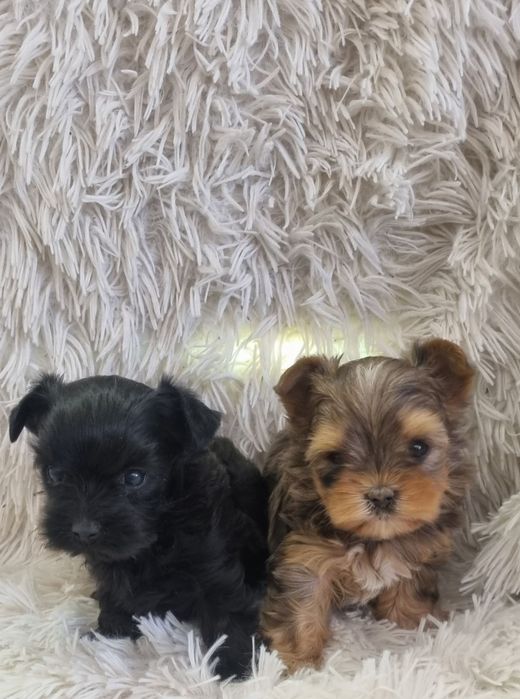 Предлагаме изключително красиви и игриви кученца Йоркширски териер – мерле момиче и чисто черно момче.
