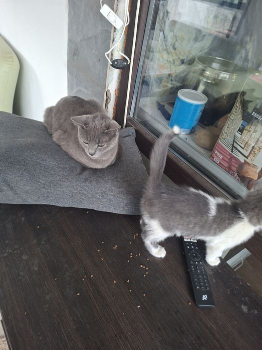 Всички чисто сиви котенца се предлагат за продажба, като едно се оставя за нас.