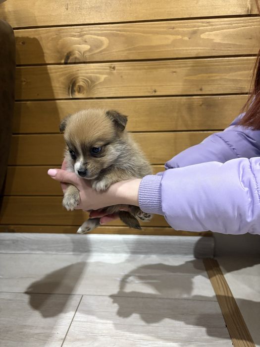 Кученцата са два месеца. Померан шпиц е майката, бащата е Щпиц.