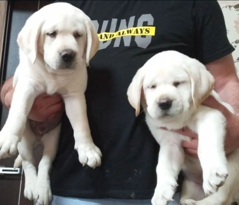 Мъжки и женски бели лабрадори.