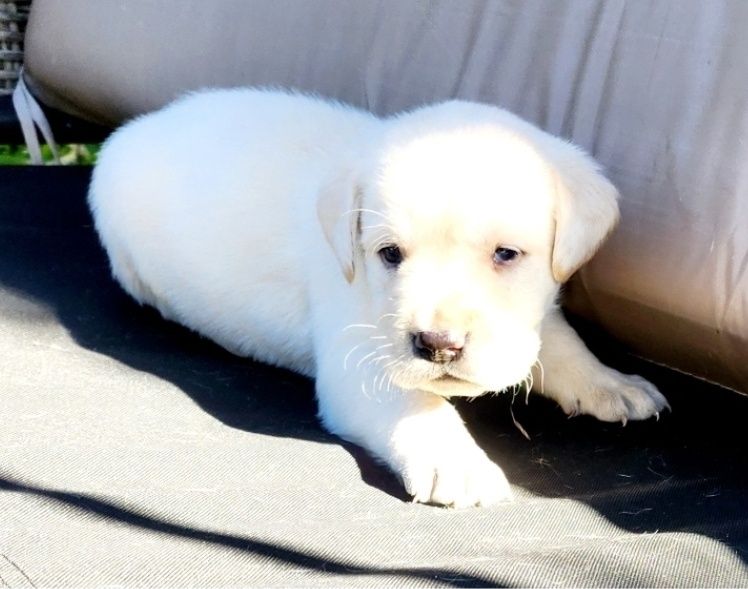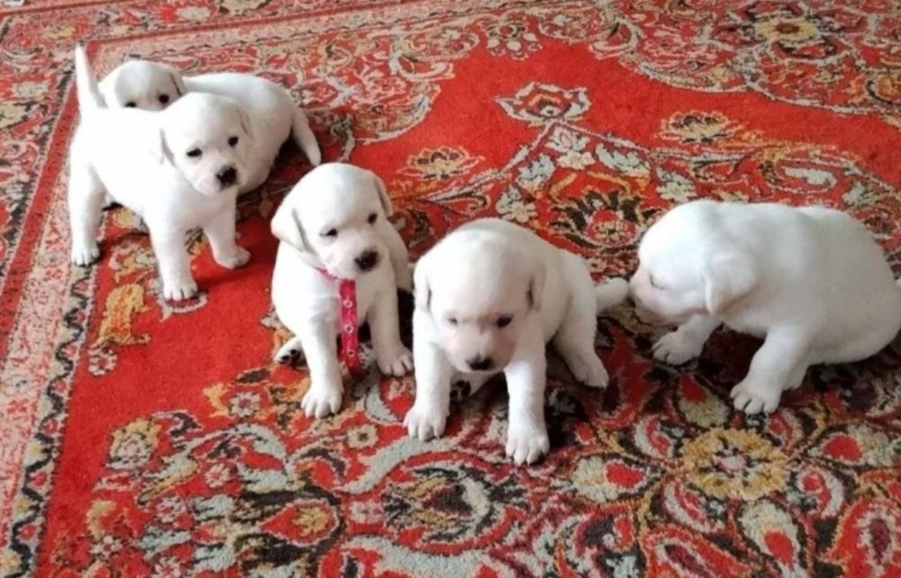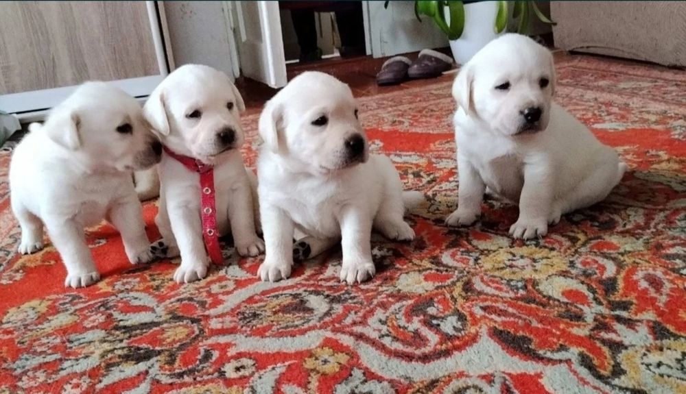 Чистокръвни бели мъжки и женски лабрадори.