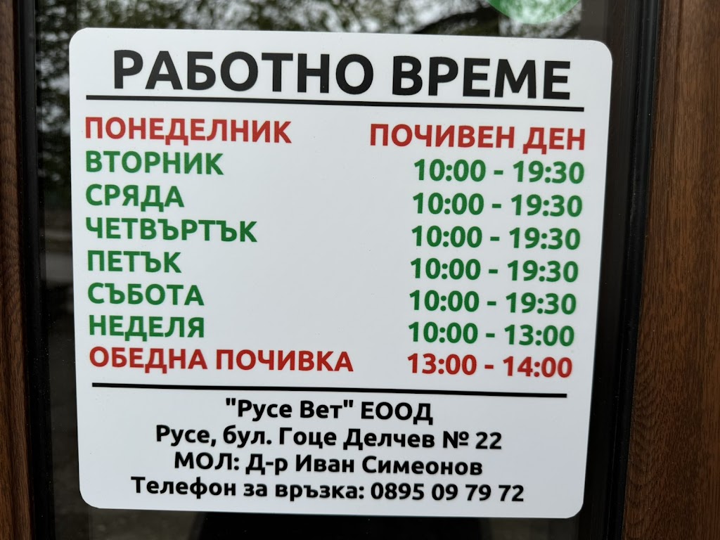 Дружба Вет е ветеринарен кабинет, разположен на бул. „Гоце Делчев“ 22 в ж.к. Дружба 2, Русе. Основната дейност на обекта е предоставяне на ветеринарна грижа за домашни любимци, като клиентите често отбелязват професионализма и вниманието на екипа. С отличен рейтинг от 5 звезди и 16 отзива, кабинетът се откроява със своята приветлива атмосфера, удобно местоположение и възможности за лесен достъп. Клиентите споделят положителни впечатления от отношението и компетентността на специалистите, което създава доверие в услугите на обекта. За да получите повече информация или да се възползвате от предлаганите услуги, разгледайте Дружба Вет в Русе.