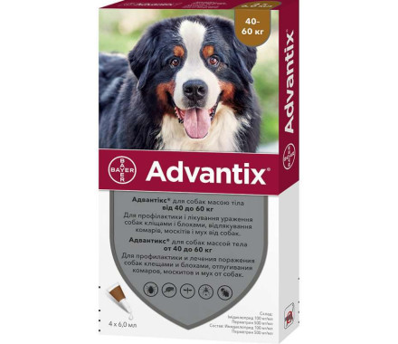 Краплі на загривку Advantix (Адвантікс) для собак вагою від 40 до 60 кг від бліх, кліщів, комарів та москітів.