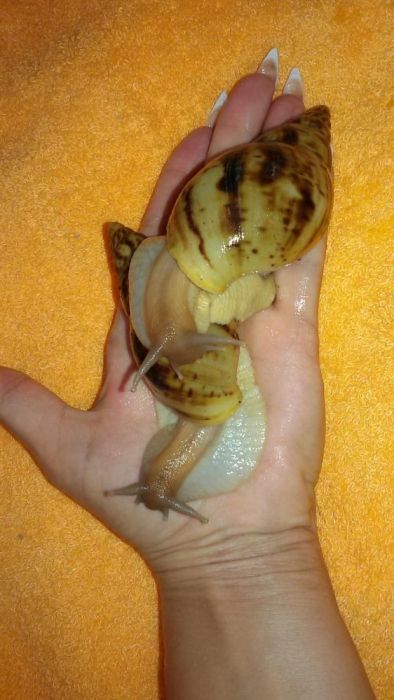 Ахатина Ретикулята: На 3 фото — чорноголові підлітки та маленькі.