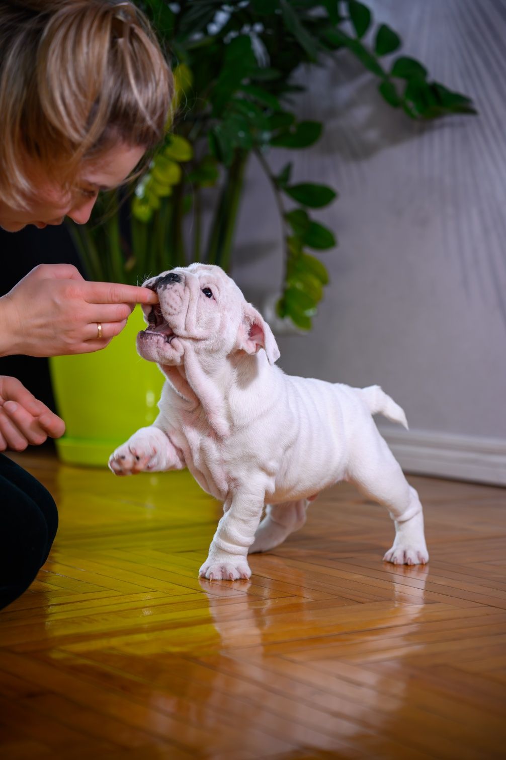 Пропонується до резервування чарівний хлопчик породи Англійський бульдог на прізвисько Пельмешка. Малюк має офіційне ім’я “Odin Imperial Power”. Він неймовірно м’якенький, плюшевий та має чисто біле забарвлення. Хлопчик буде готовий до переїзду в нову люблячу родину вже на початку березня.