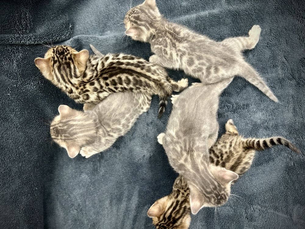 Троє кошенят блакитного окрасу, двоє — розетка на золоті. Є хлопчик і дівчатка. На момент передачі в нову родину кошенята будуть привчені до лотка, окремого харчування та кігтеточки.