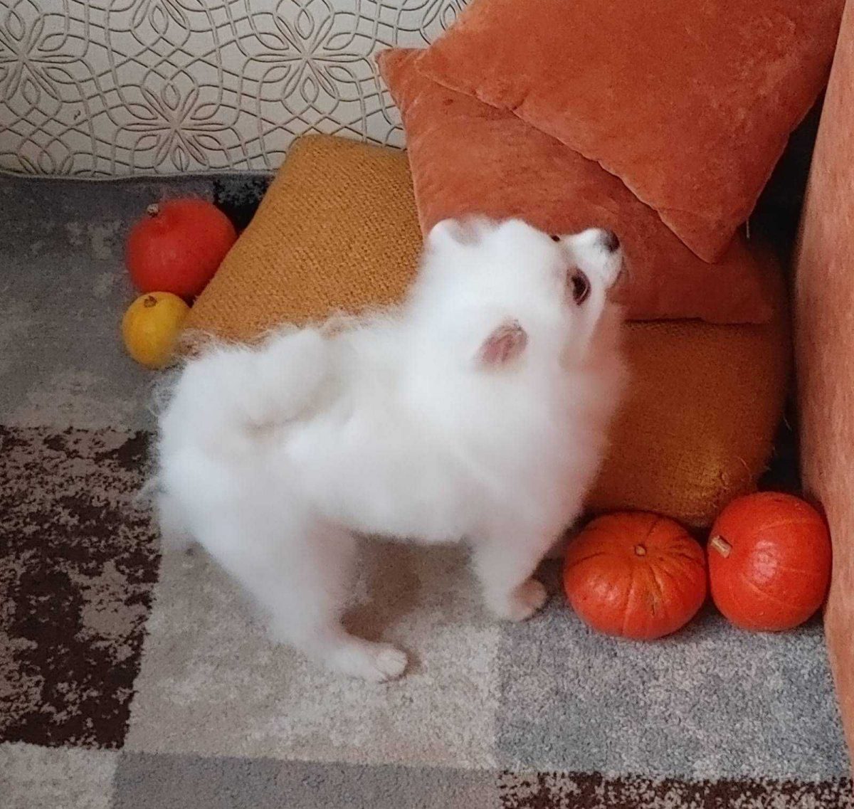 Пропонується неймовірний хлопчик породи Померанський шпіц, справжній білосніжний красень. Малюк уже підрощений, активно обростає новою густою шерстю після дитячої линьки. Має екстремально пухнастий тип з подвійним підпушком. Хлопчик надзвичайно позитивний, з дитячою енергетикою та задором, що щодня даруватиме вам радість. Знаходимося в Києві на Лівому березі. Якщо ви з іншого міста, зможемо організувати доставку потягом по Україні. За запитом надішлю фото малюка до линьки у месенджери.