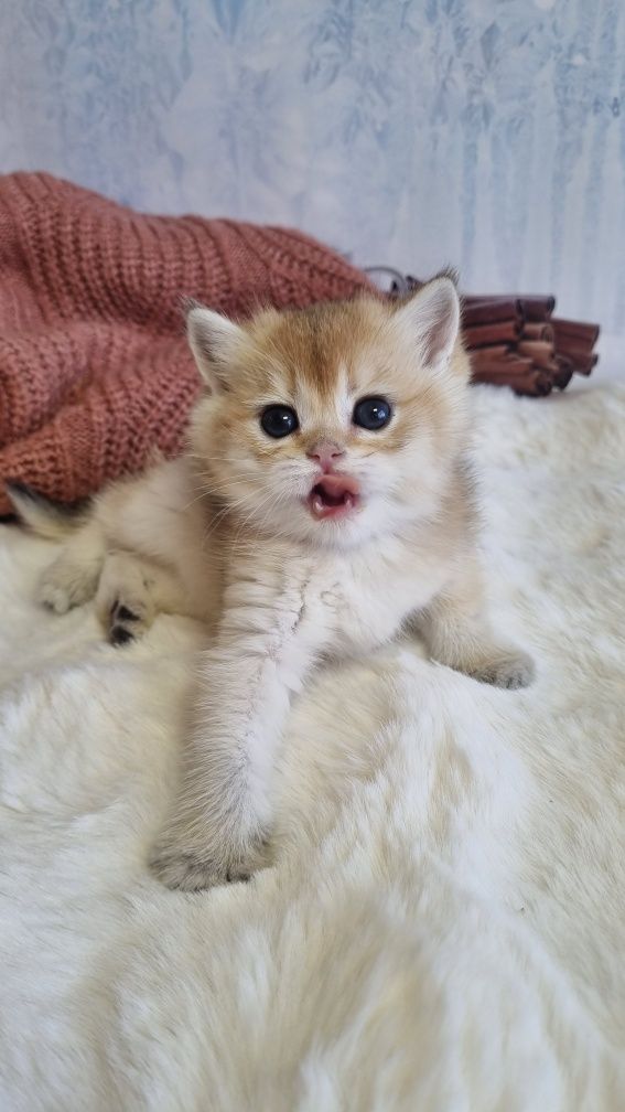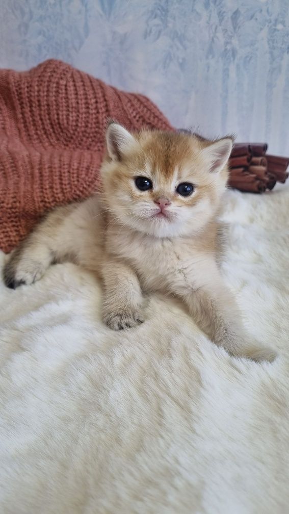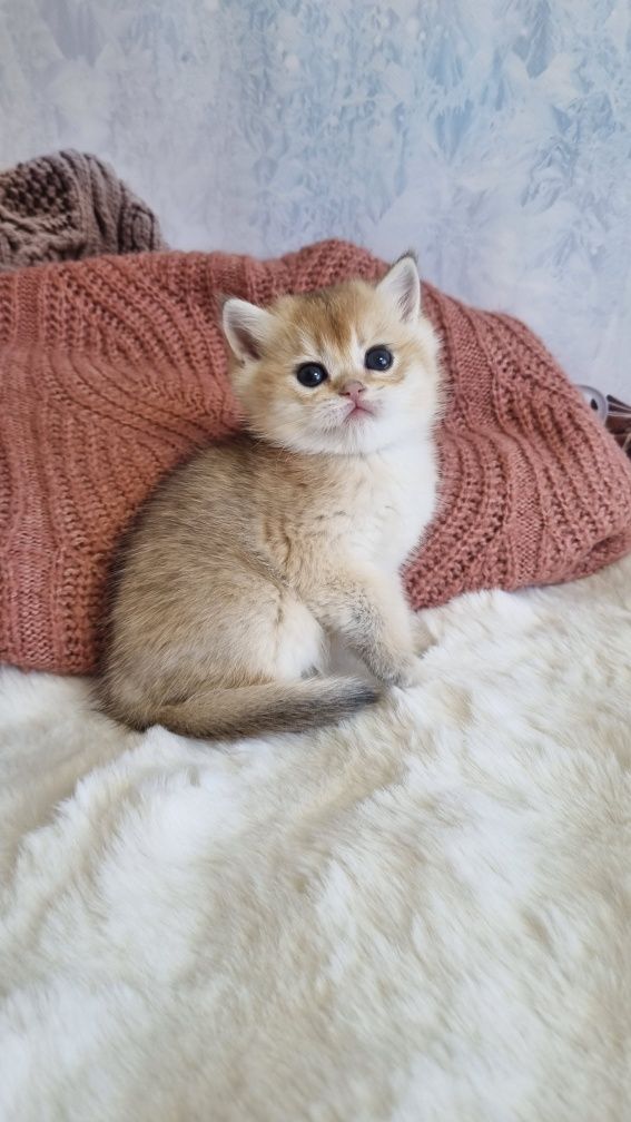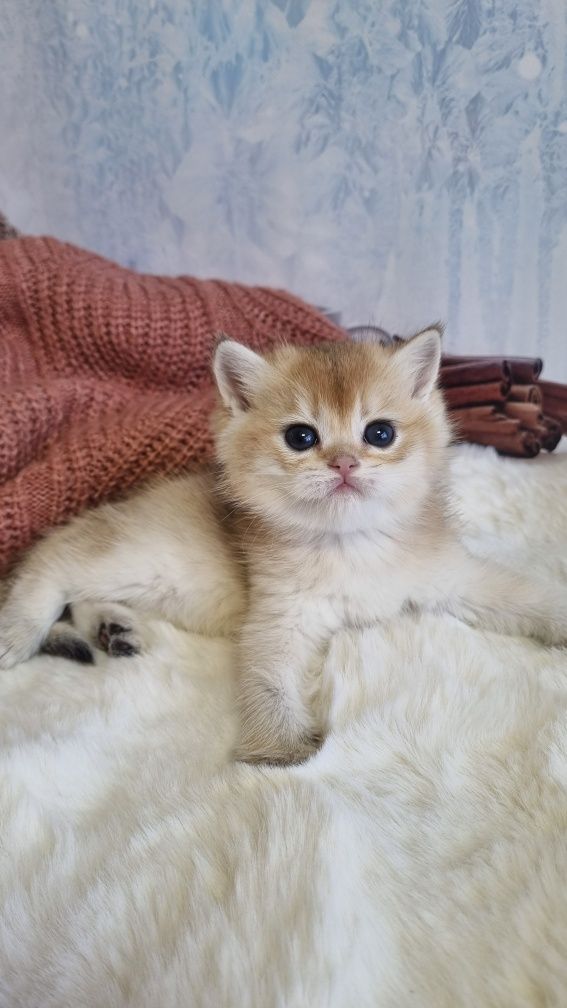 Пропонується до бронювання чарівна дівчинка породи британська короткошерста у дорогоцінному забарвленні золота шиншила. Лагідна та мила малеча стане ідеальним домашнім улюбленцем для вашої родини.