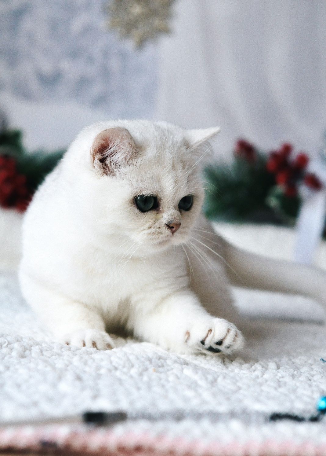 Пропонуємо чарівного британського хлопчика з неймовірно м’якою білою вовною та великими зеленими очима.