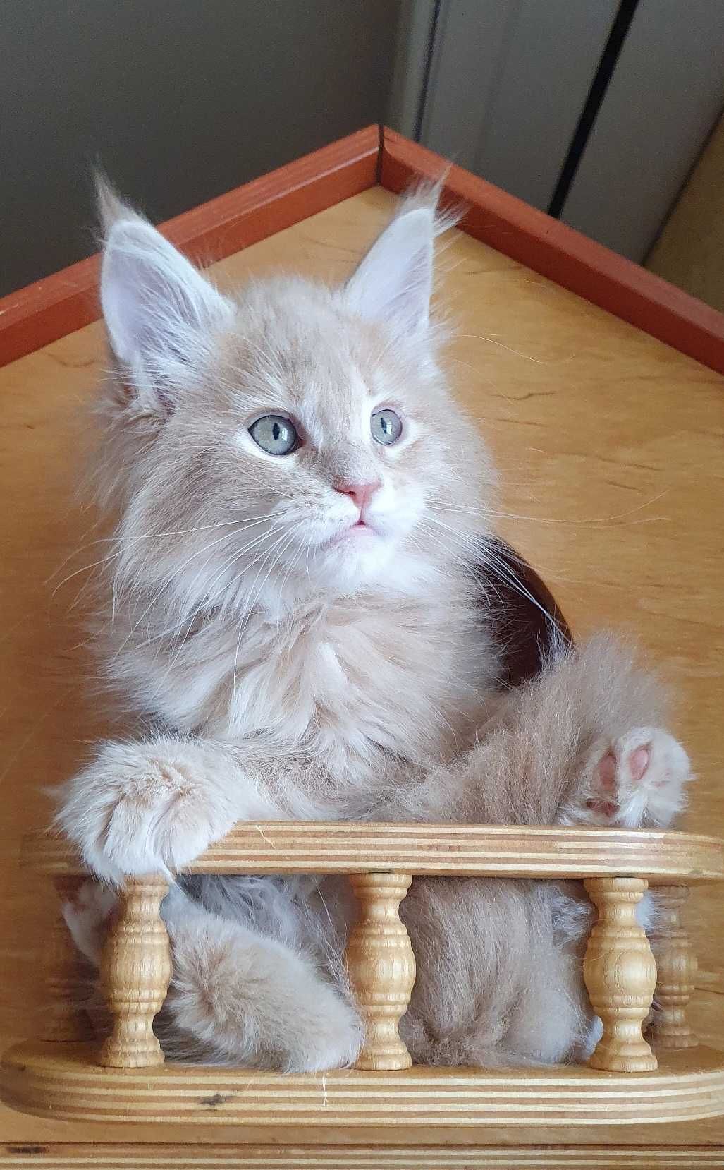 Дівчинка мейн кун від батьків шоу класу, кремовий мармур, вік 2 місяці