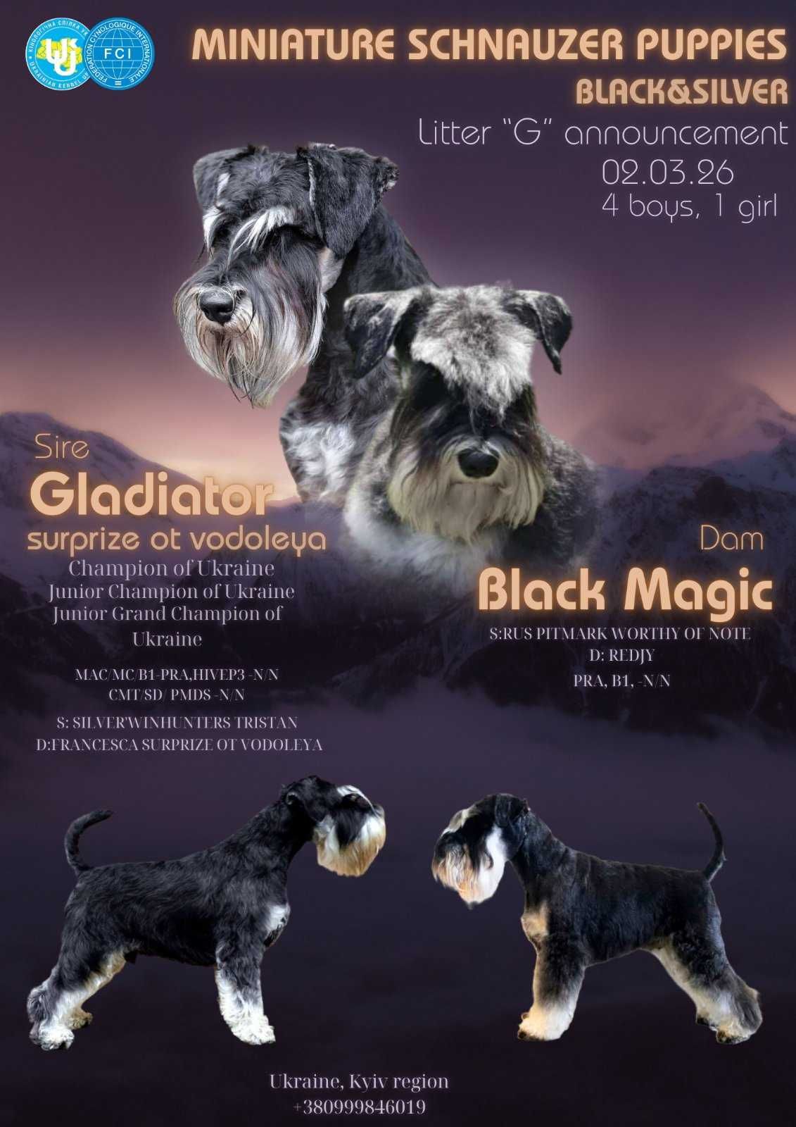 Здоров’я батьків: Прекрасні представники породи з чудовим характером; мають розширений пакет генетичних тестів на відсутність спадкових хвороб.