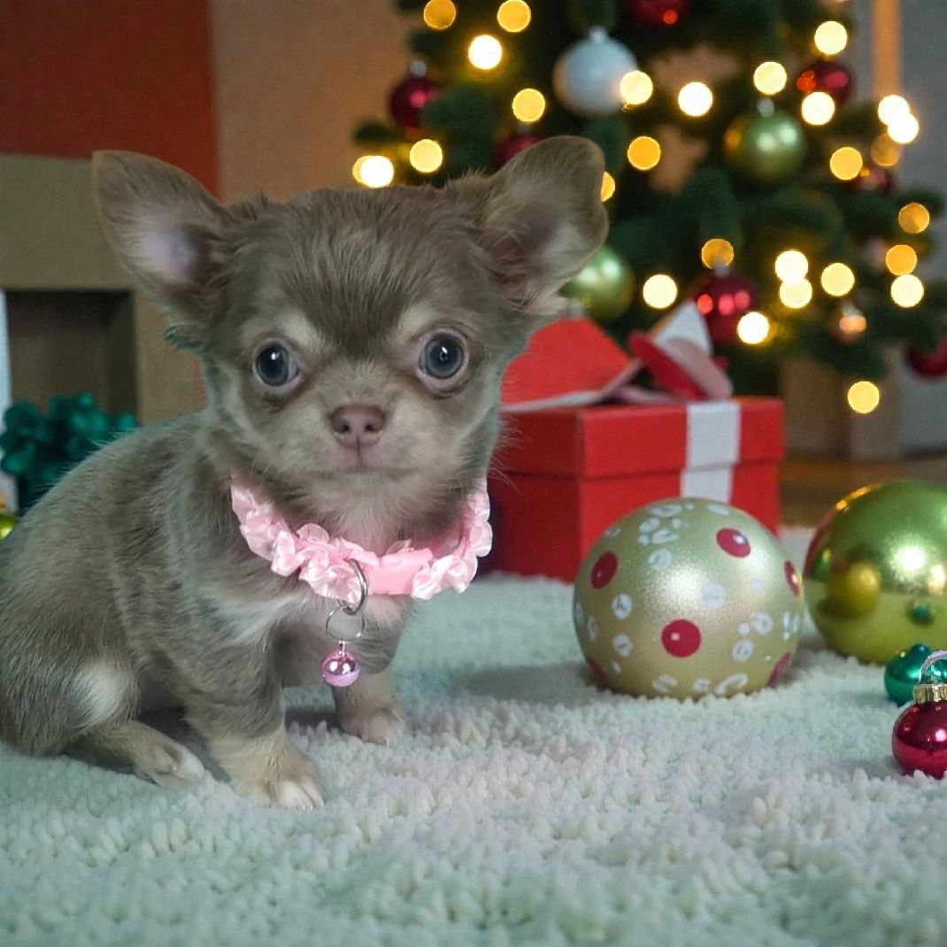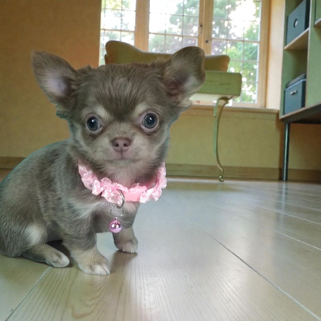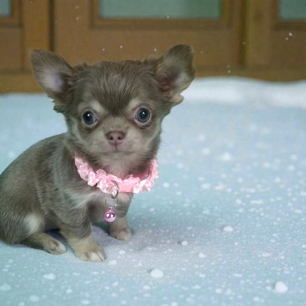Пропонується активна та допитлива красуня породи Чихуахуа. Дівчинка має лялькову зовнішність, коротенький ніс та ефектне забарвлення — лілове з підпалом. Малеча дуже ласкава, любить обійми та поцілунки. Собака має перспективу для шоу та розведення.