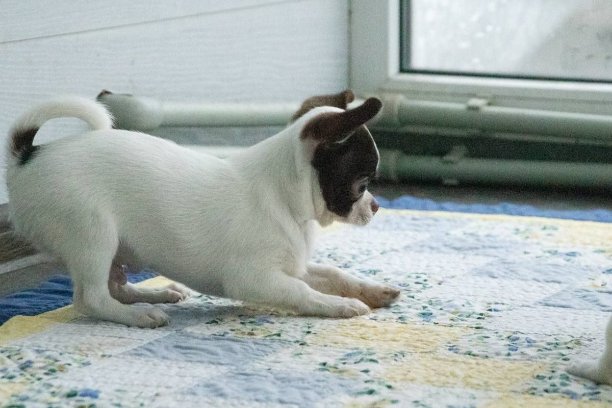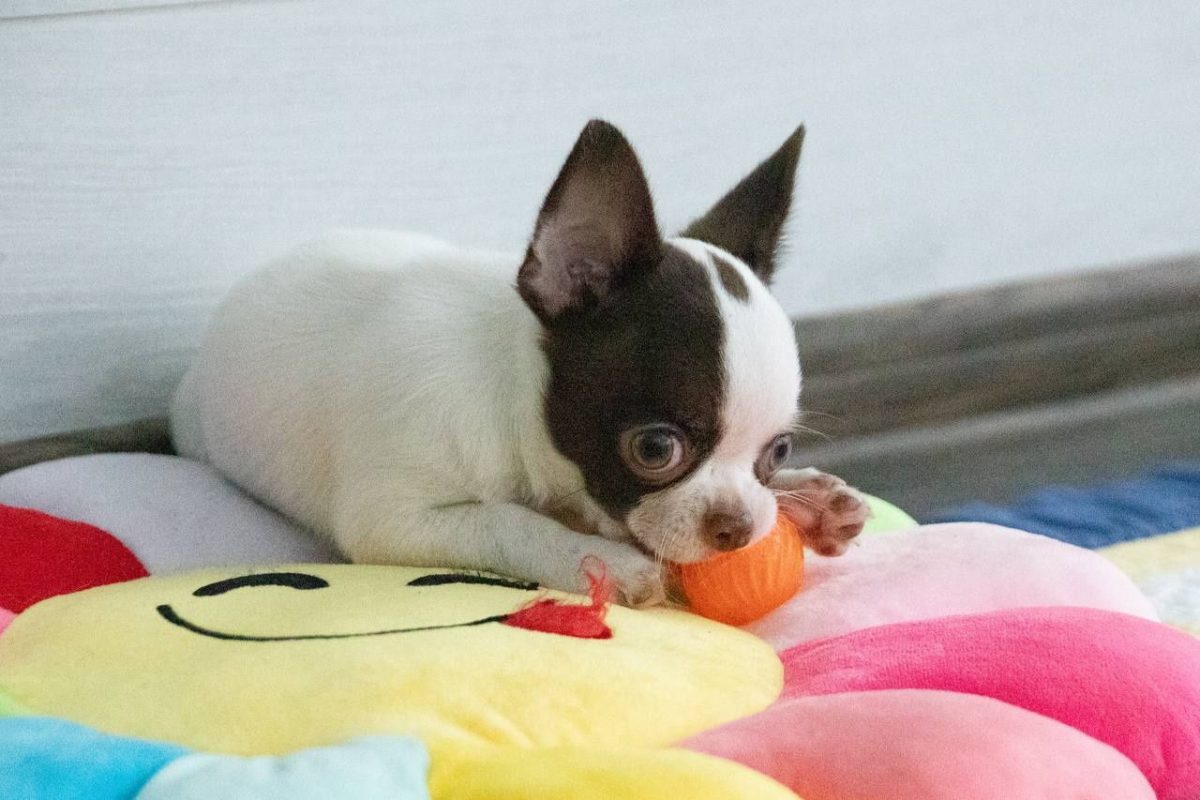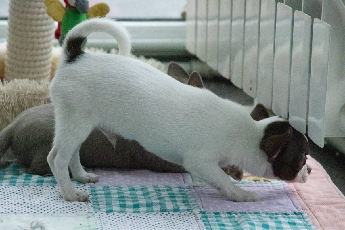 Манюсінький хлопчик породи Чихуахуа біло-шоколадного окрасу шукає свою найкращу матусю. Неймовірно ніжний і лагідний малюк готовий до переїзду в люблячу родину.