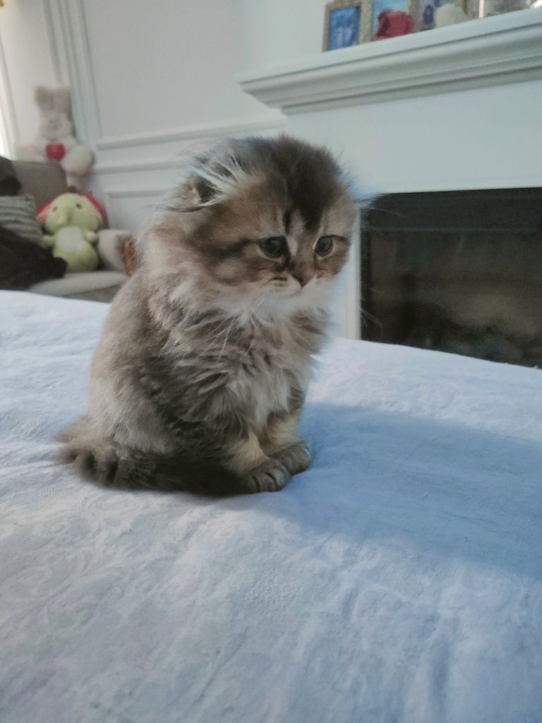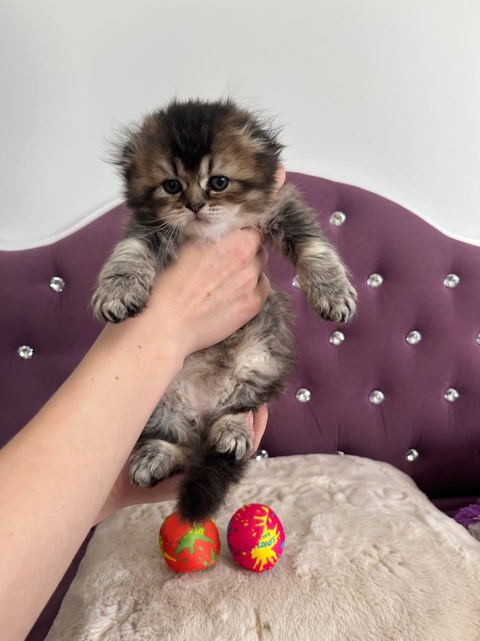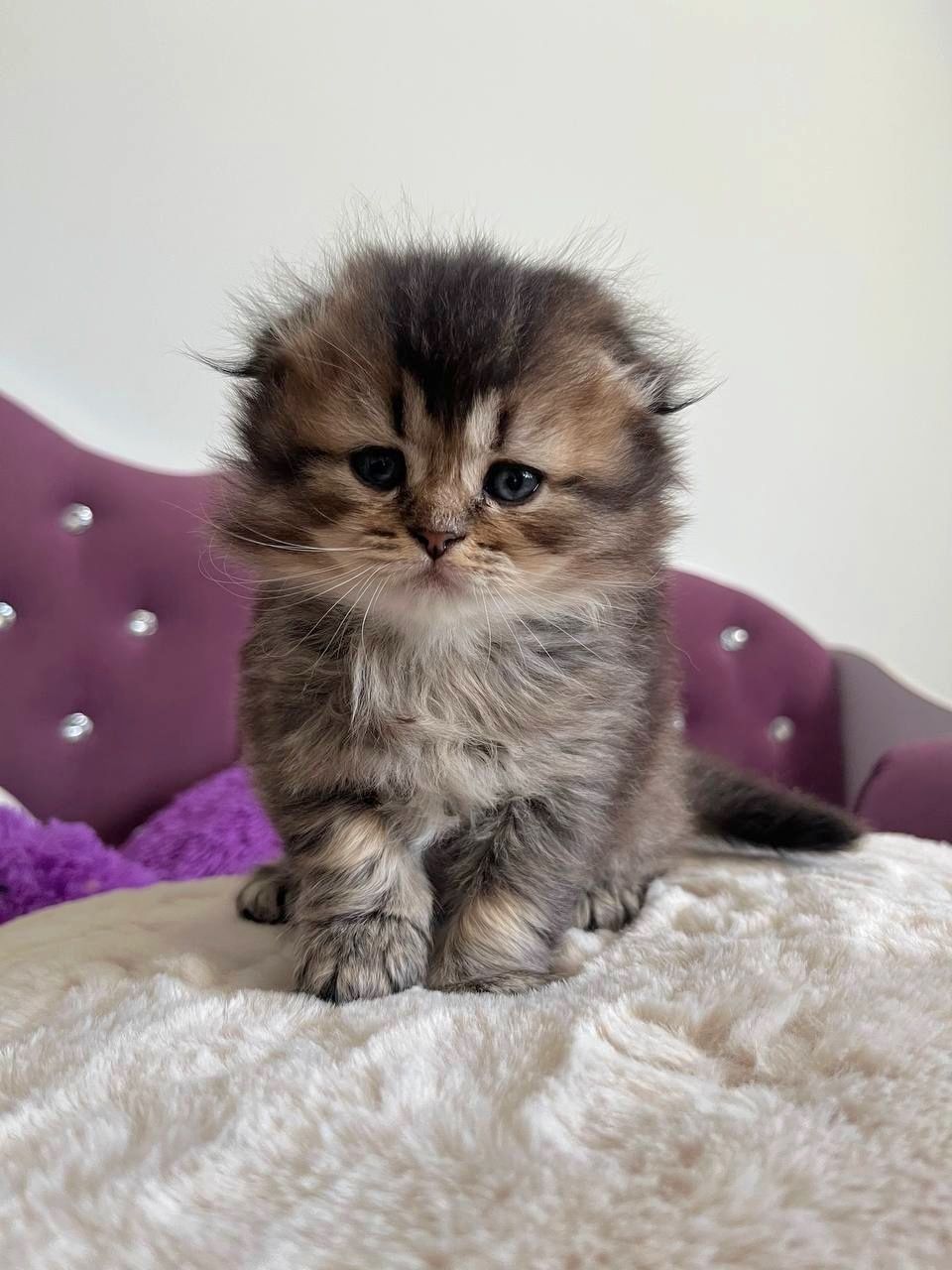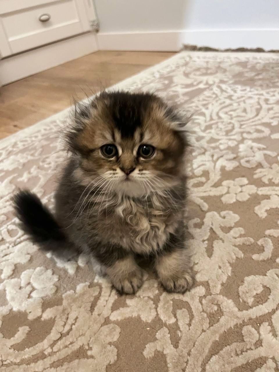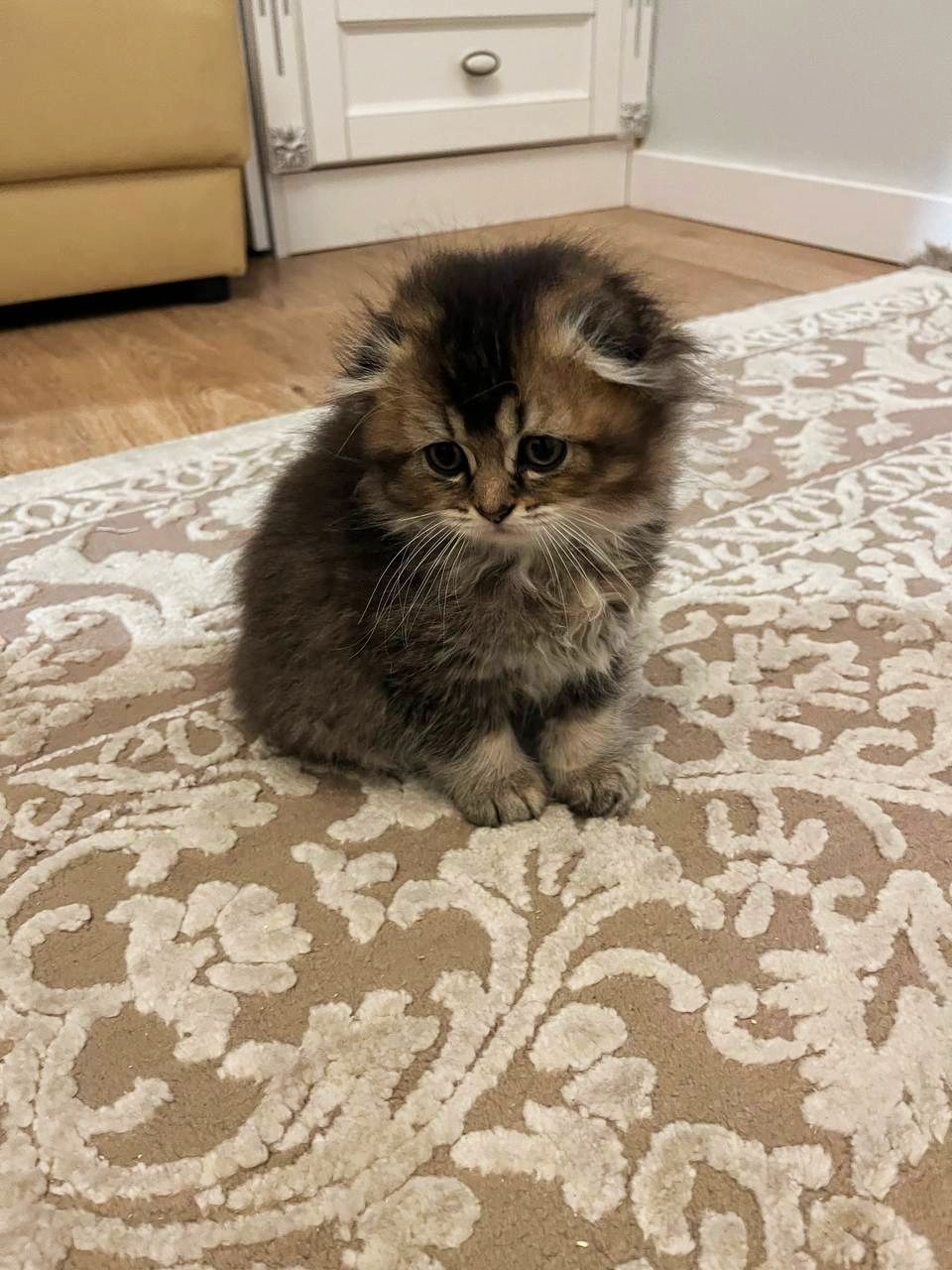 Кошеня має гарне генетичне здоров’я, дуже гарних батьків. У кошеняти густа шерсть, кругла мордочка, великі оченята. Дуже ласкава, муркотить.