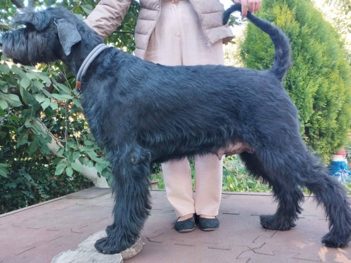 Продаються цуценята породи Різеншнауцер із документами Кінологічної Спілки України. Малюки та мати отримують повноцінне якісне харчування, вітаміни та належний догляд. На фото представлені реальні батьки та цуценята у віці три місяці.