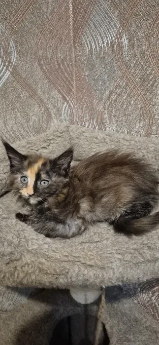 На фото дівчинка яка пропонується, вік 6 тижнів, навчена всьому кошачому етикету.Туалет на наповнювач когтеточка на відмінно, їсть сухий корм Проплан. Доставка по Україні.