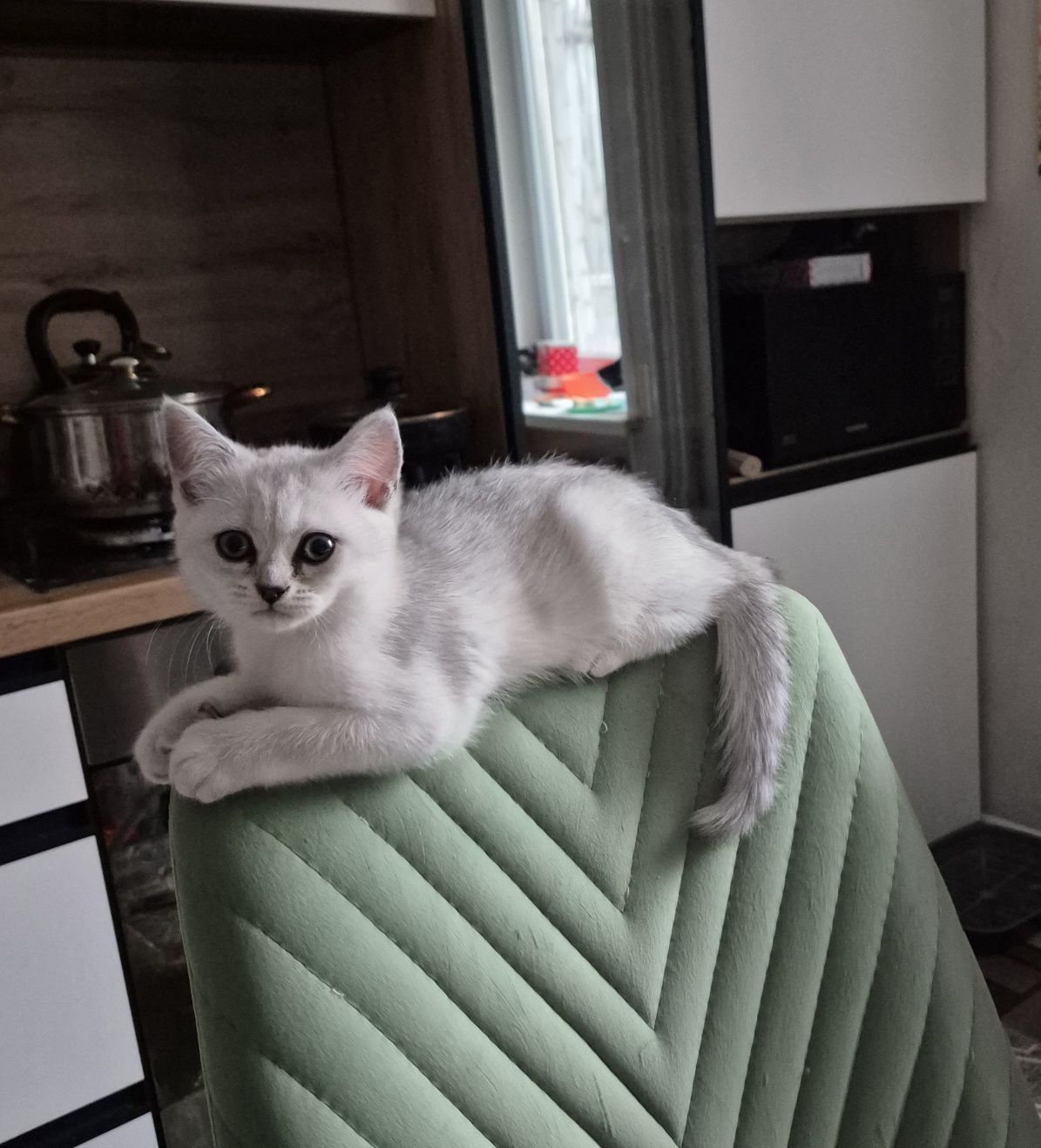 Кошеня срібляста шиншила прямовуха дівчинка, дата народження 21 листопада. З добрим і слухняним характером, лоток добре знає. Любить сидіти і муркотіти на руках)