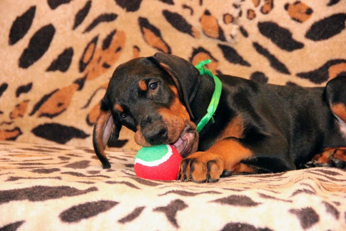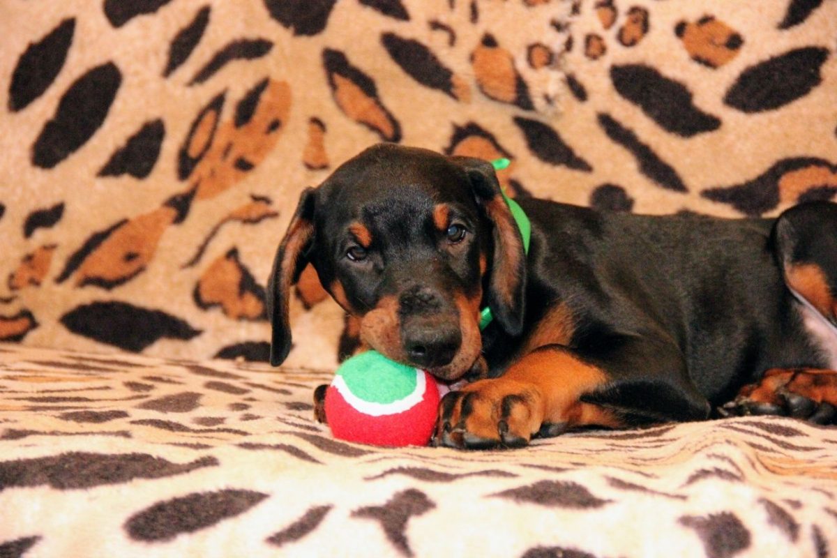 Пропонується до продажу обворожливий малюк породи Доберман віком 3 місяці. Хлопчик походить від високопородних батьків із титулами чемпіонів, має чудовий екстер’єр та перспективу для виставок або як вірний компаньйон. Малюк повністю готовий до переїзду в новий люблячий дім.