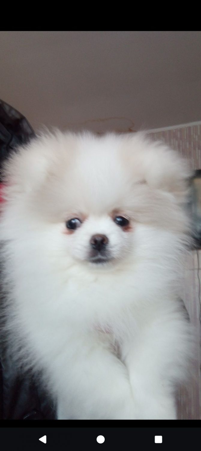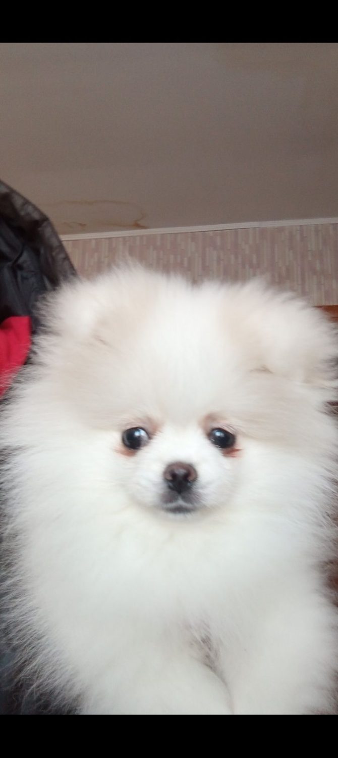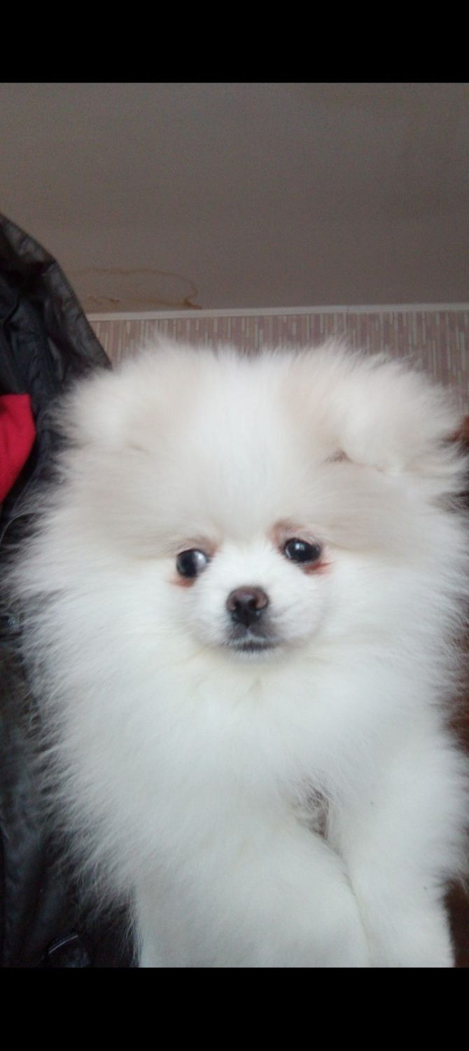 Пропонуються білосніжний хлопчик Померанського шпіца. Малюку три місяці, він повністю здоровий та доглянутий. Цуценя вже самостійно їсть корм та привчене ходити на пеленку. Має ветеринарний паспорт та всі необхідні щеплення за віком. Білосніжний красен чекає на свою нову родину.