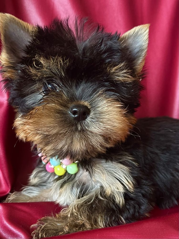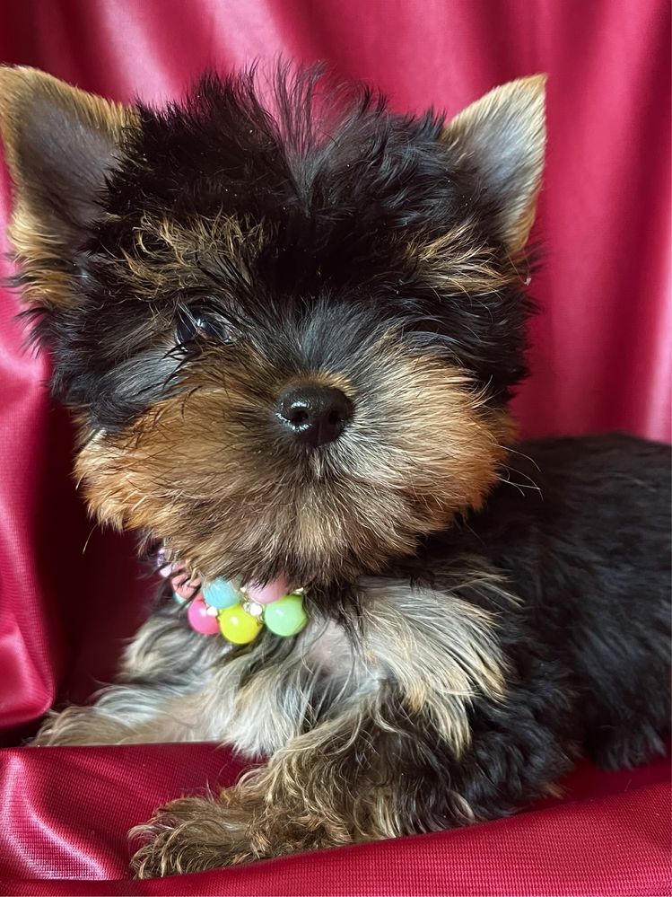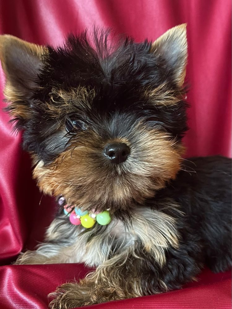 Пропонується красивий породний міні-хлопчик породи Йоркширський-Тер’єр у сучасному типі бебі-фейс. Малюк має довгі вії, стійкі вушка та густу набивну шерсть правильної фактури. Весь ідеальний, на коротких ніжках, у гарному забарвленні темна сталь із золотом.