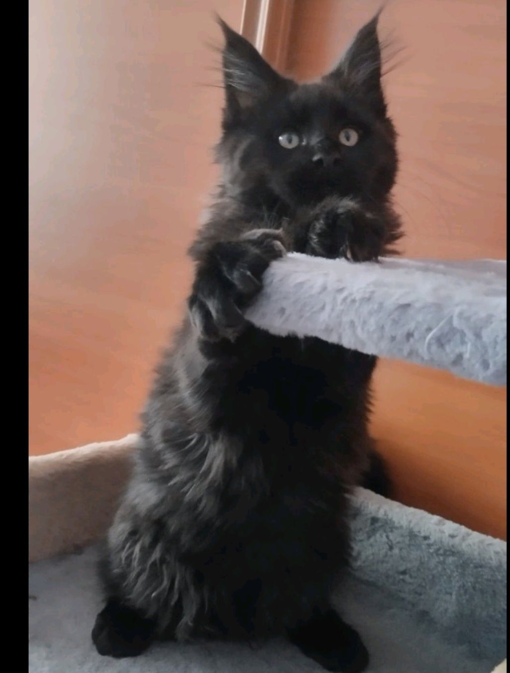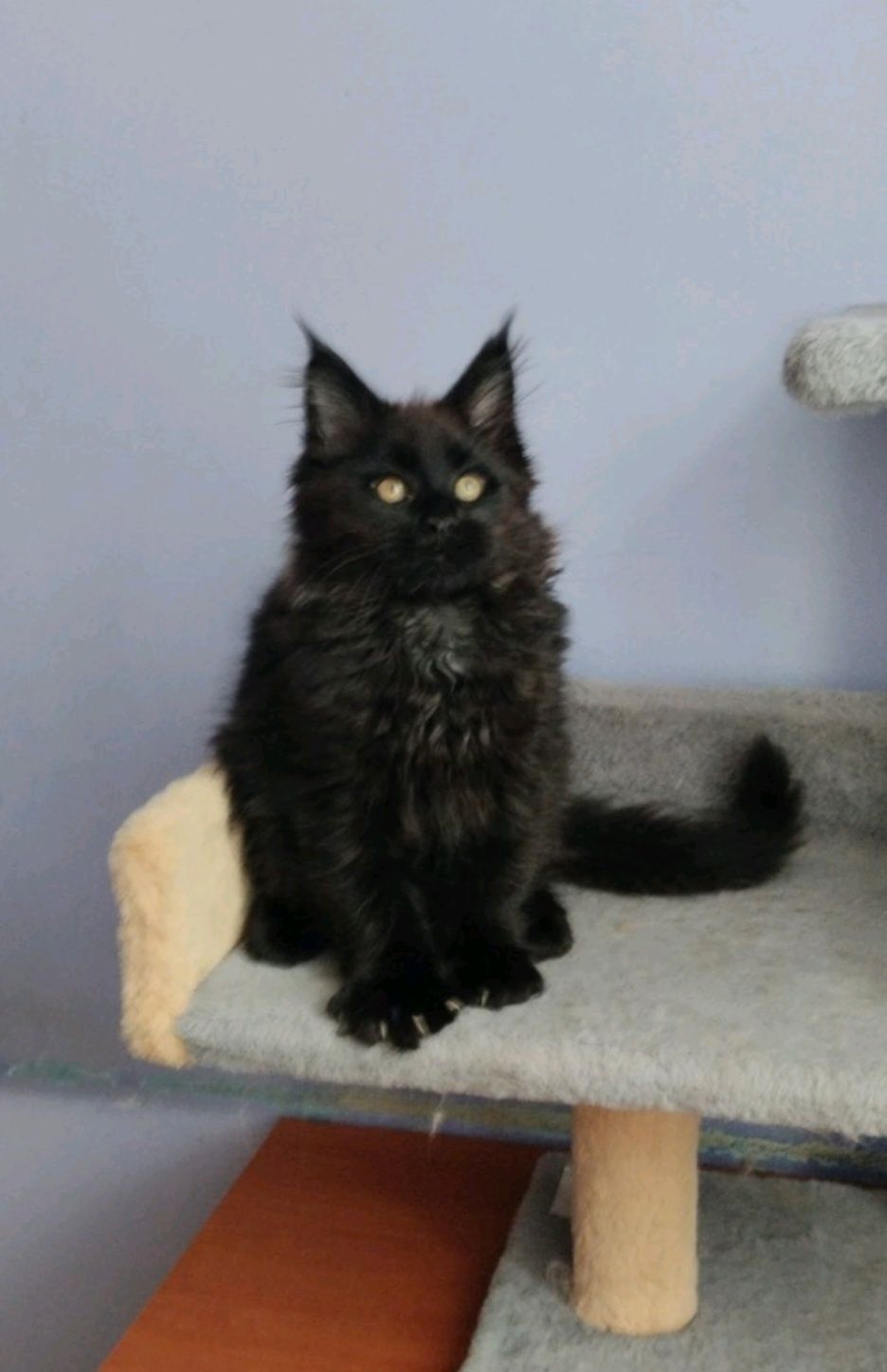 Хлопчик Мейн Кун. Забарвлення чорний солід. Народився 30.10.2025. Ветеринарний огляд проведено, вакцинований. Чипований. Є ветеринарний паспорт. За характером ласкавий, грайливий, орієнтований на людей та інших тварин. Буде великим котиком. Вага зараз 2,4 кг. Мама чорна солід, тато червоний. Тато 13 кг. Привчений до лотка і кігтеточки. Доставлення можлива. Є багато фото і відео красеня.