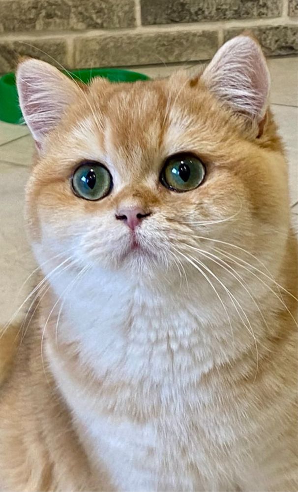 У котика великі смарагдові очі, маленький носик і вушка, шубка золота, наче плюш.