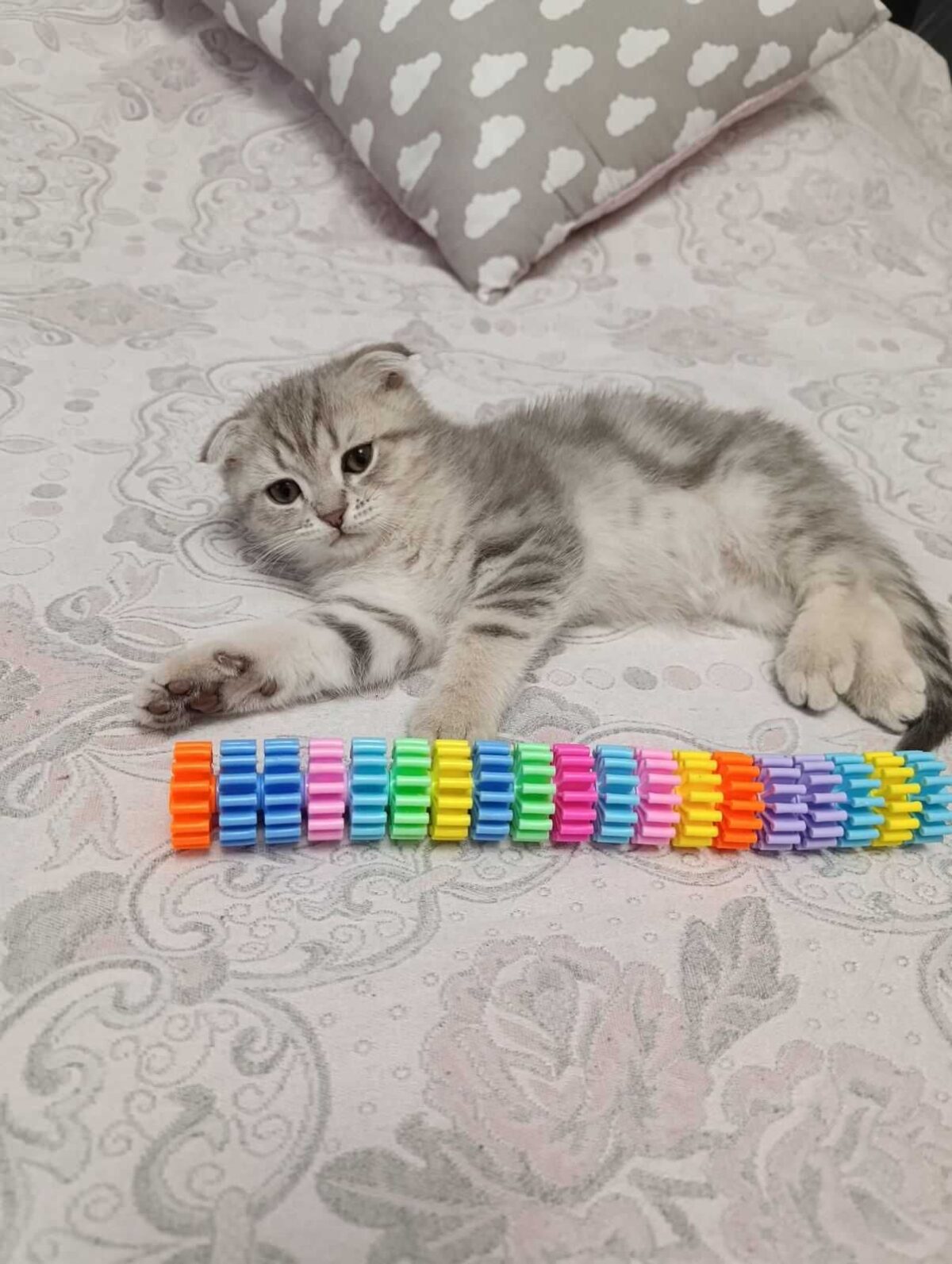 Чудовий висловухий котик, потрійний залом вушок, дуже гарний окрас. По характеру дуже ніжний. Вік 3 місяці, привчений на лоток. Можлива доставлення по Україні.