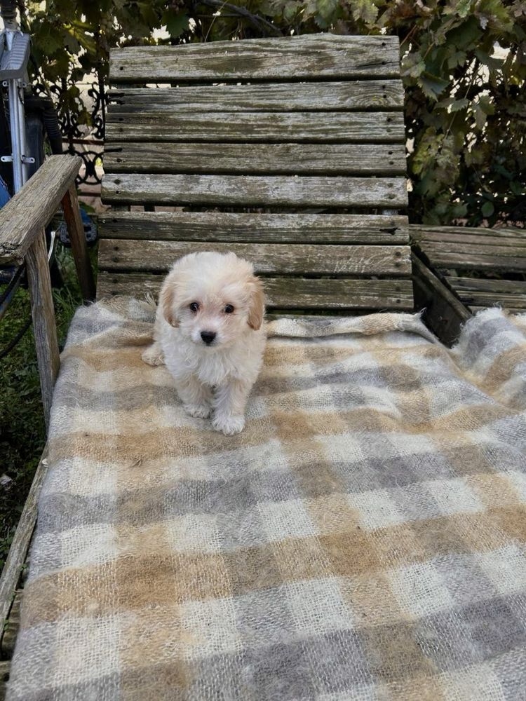 Цей чарівний та вихований малюк породи Мальтіпу Ф1 кольору карамель уже повністю готовий до переїзду у свою власну люблячу родину.