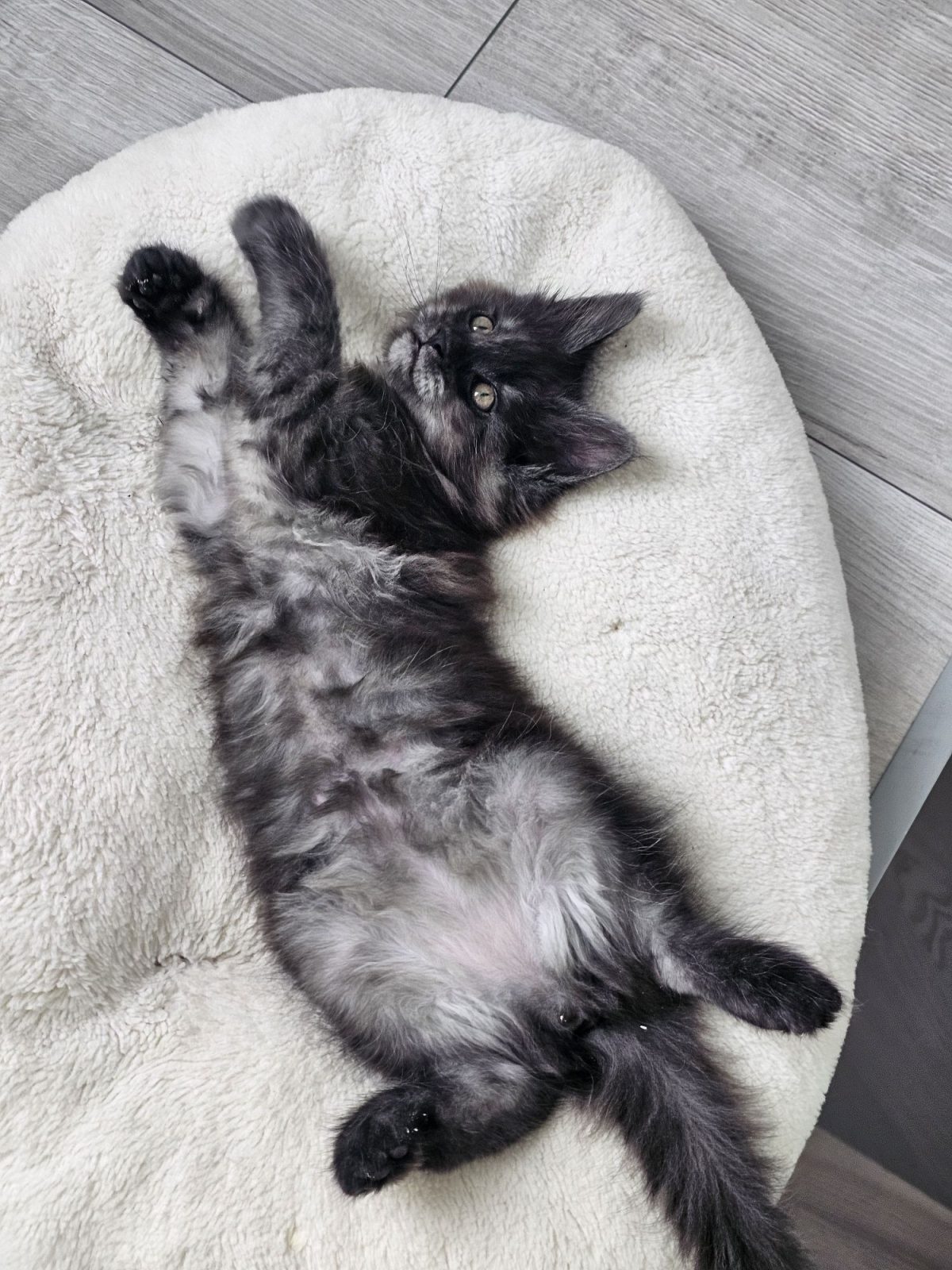 Наш розплідник пропонує Вашій увазі шикарну дівчинку, в окрасі чорний дим народжену 01.12.2025р. Має відмінні породні дані, від батьків чемпіонів.