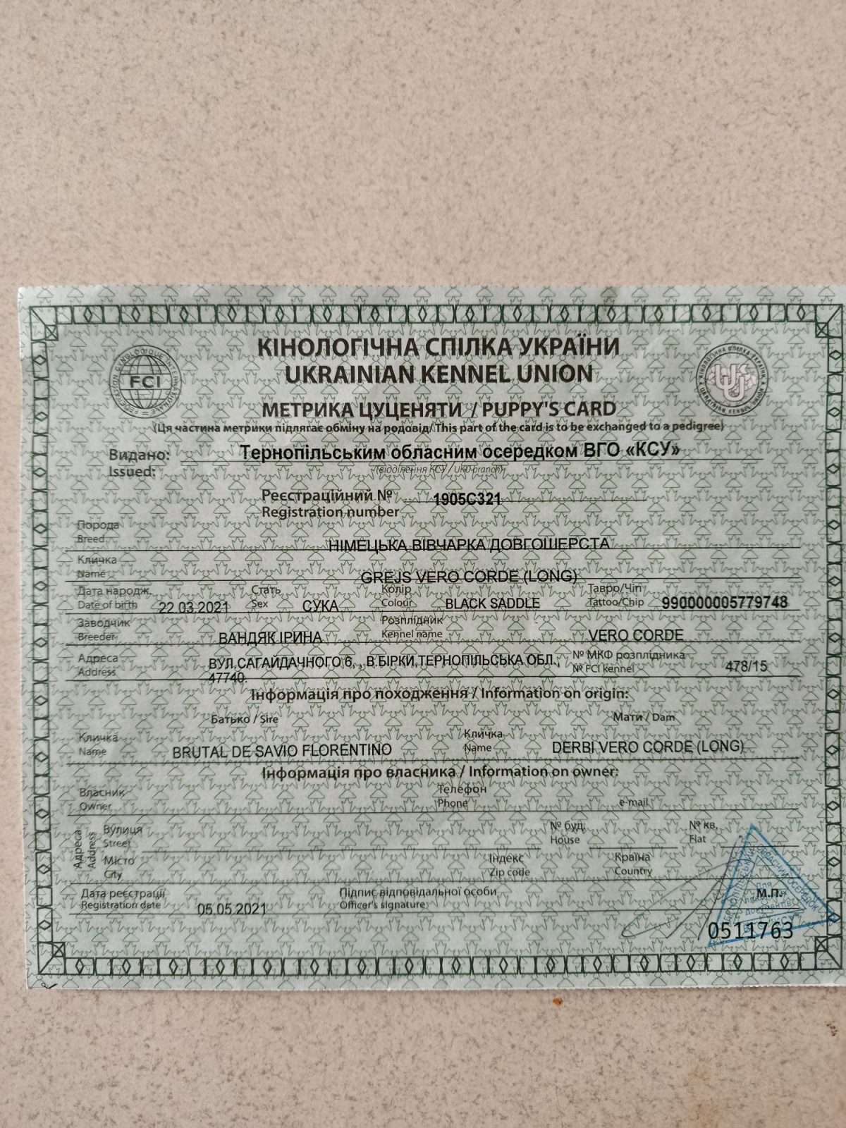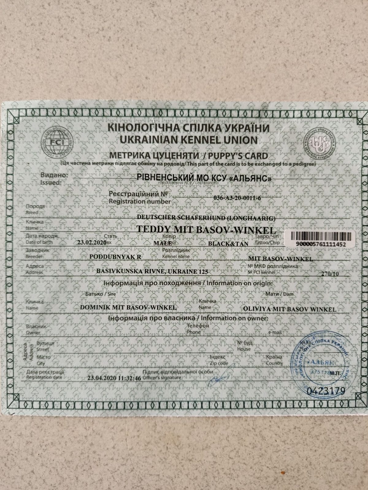 Пропонуються до продажу чистокровні цуценята породи Німецька вівчарка (довгошерста). Малюки народилися 03.11.2025, вони дуже активні, здорові та грайливі. Цуценята стануть надійними охоронцями вашої оселі та вірними друзями для всієї родини. Батьки мають усі необхідні документи (фото додаються).