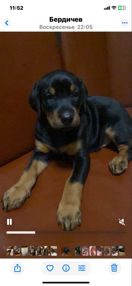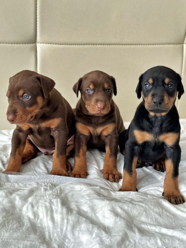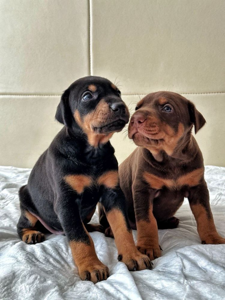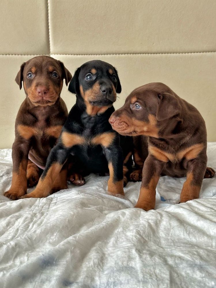Продаються міцні добермани шоколадного та чорного окрасу — енергійні, розумні й віддані собаки з чудовими охоронними інстинктами. Вони стануть прекрасними компаньйонами та улюбленцями сім’ї. Дуже активні.