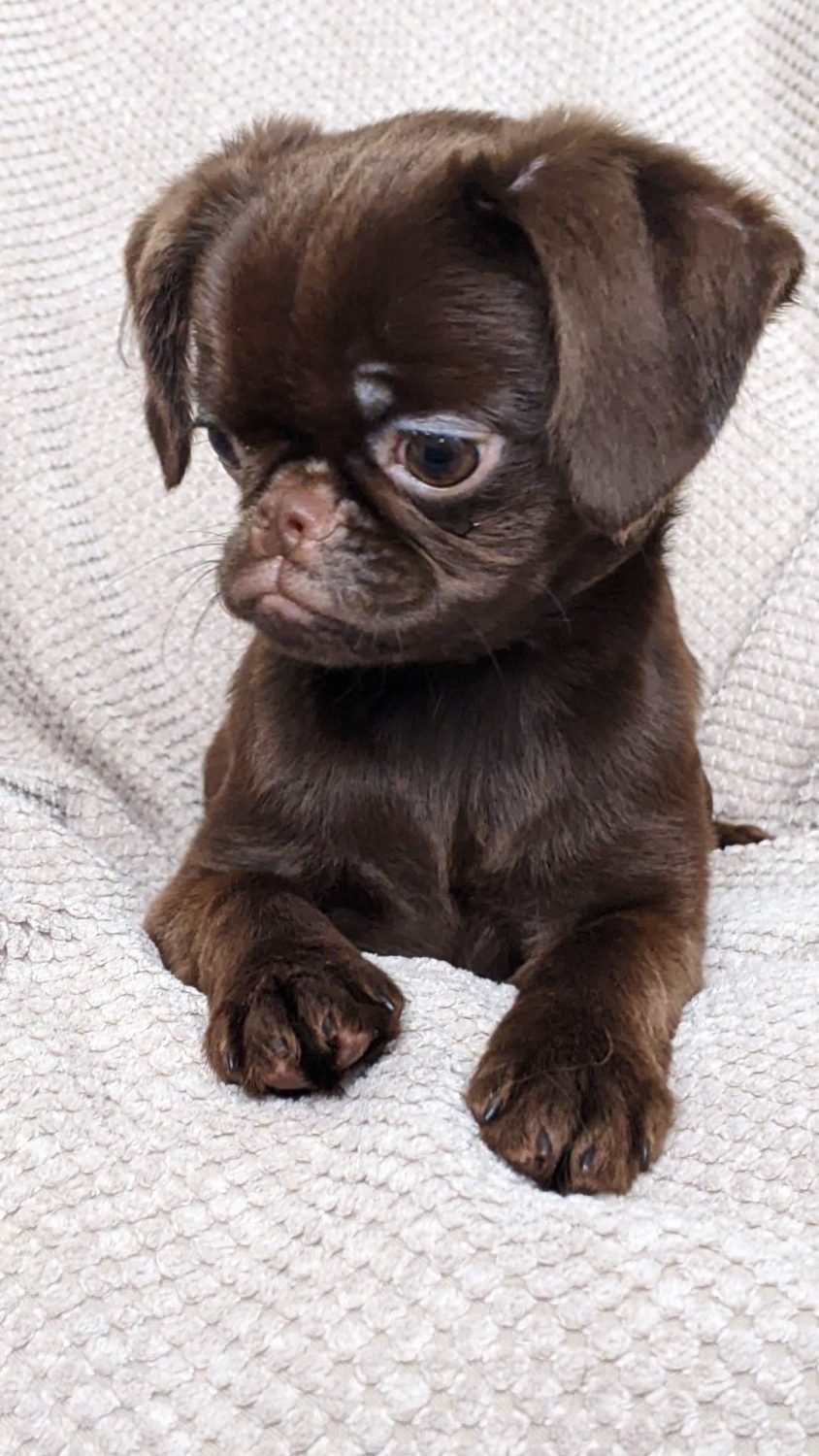 Пропонується до продажу чарівна дівчинка породи Пті-брабансон рідкісного шоколадного кольору. Малюку 5,5 місяця, вона повністю готова до переїзду в нову люблячу родину. Дівчинка соціалізована, активна та має чудовий характер, притаманний цій породі.