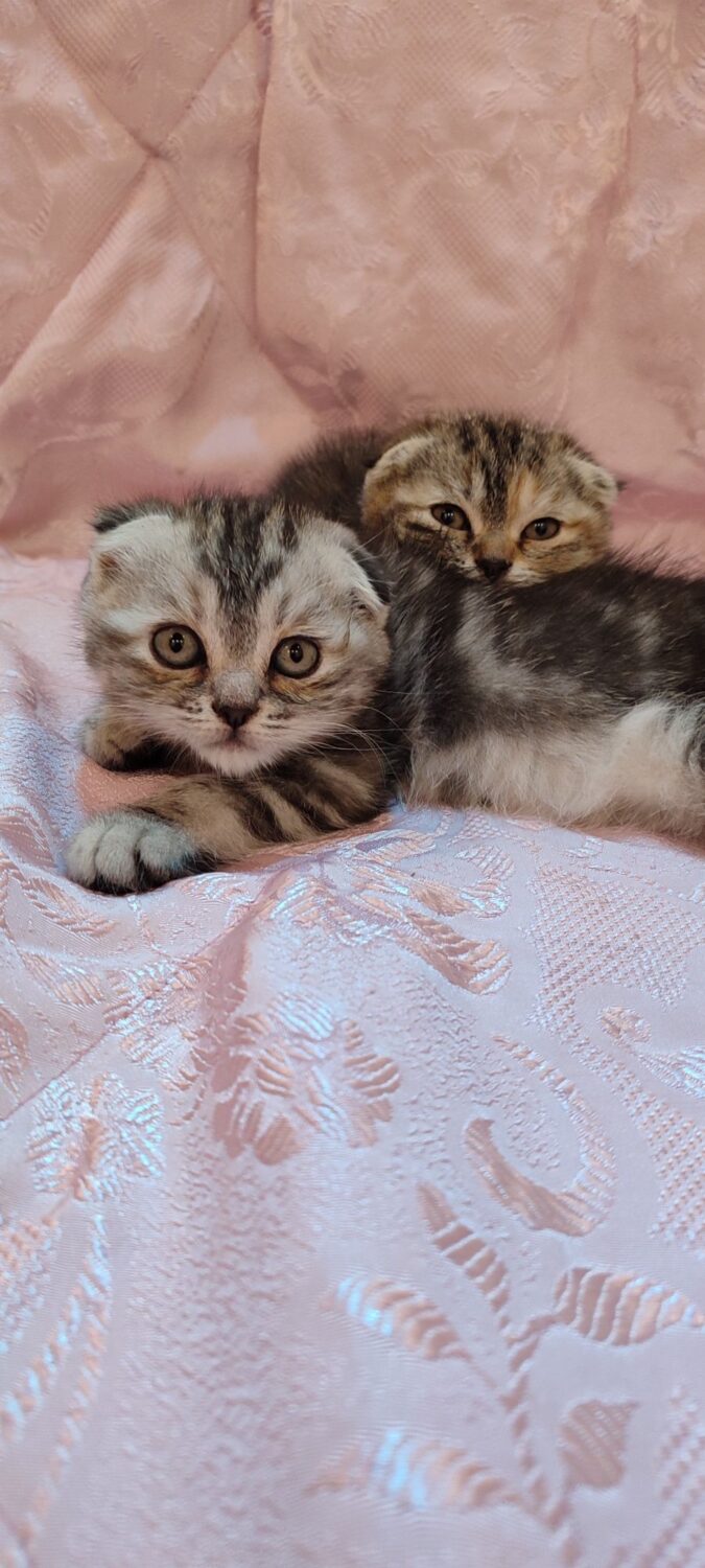 Маленькі кошенята повністю готові до переїзду у свої люблячі родини! 2 хлопчики, 2 дівчатка. Порода скоттіш фолд. Забарвлення дівчаток — таббі споттед черепаховий та мармуровий таббі (Віскас). Забарвлення хлопчиків — таббі споттед та мармуровий чорний дим. Малюки соціалізовані, люблять ласку та увагу, грайливі та допитливі. Їдять сухий та вологий корм Роял Канін, привчені до лотка, оброблені, вивчають когтеточку. Батьки наші. Більше фото та відео у Вайбері та Телеграмі. Перекупників прохання не турбувати!!! Посилками, кур’єрами, поїздами не відправляємо!!! Забирати тільки з дому. Знаходимося в районі аеропорту.