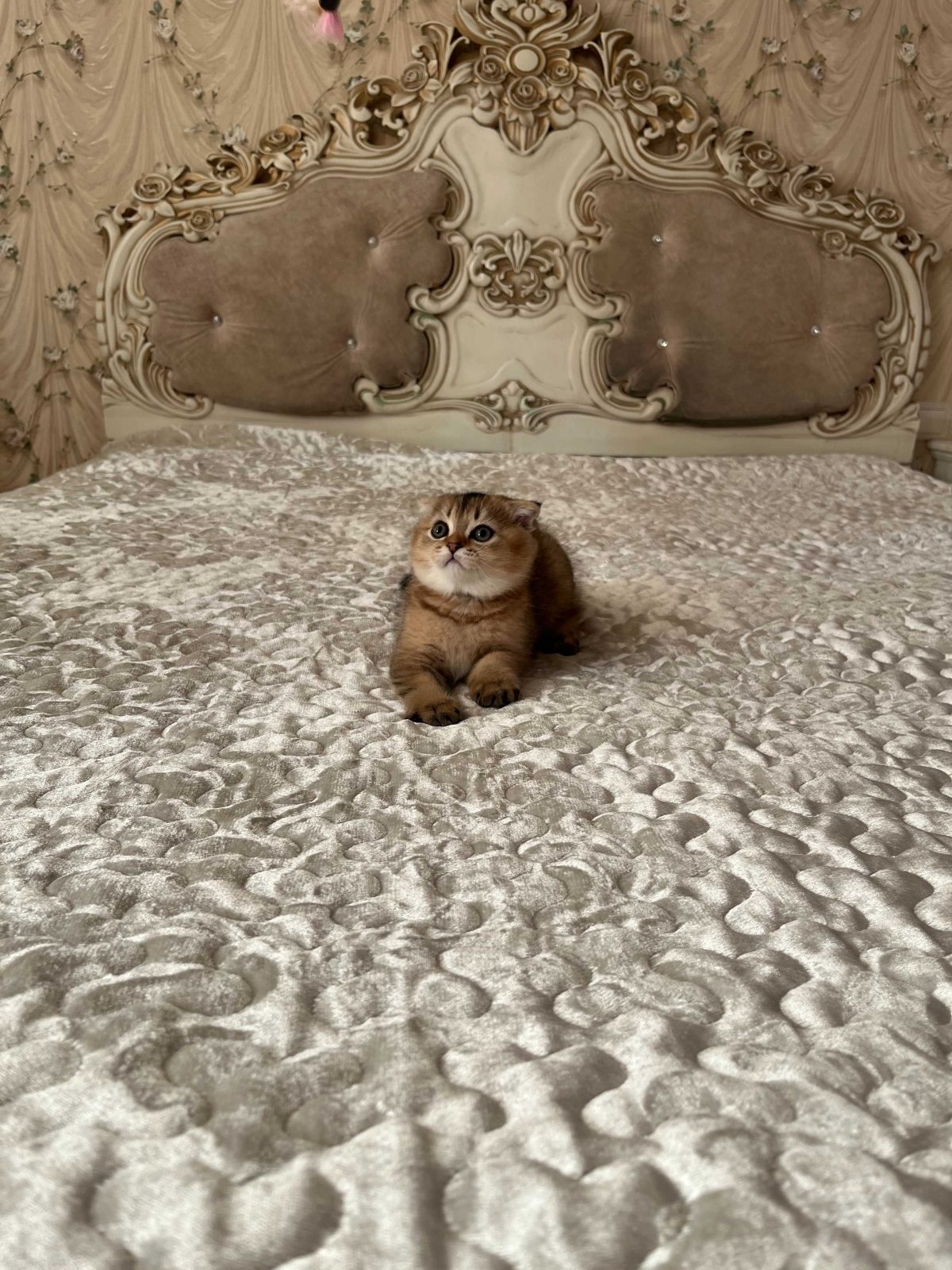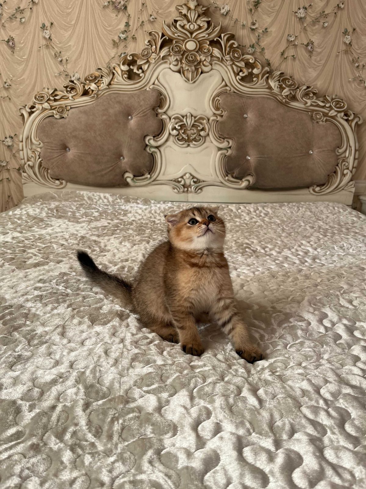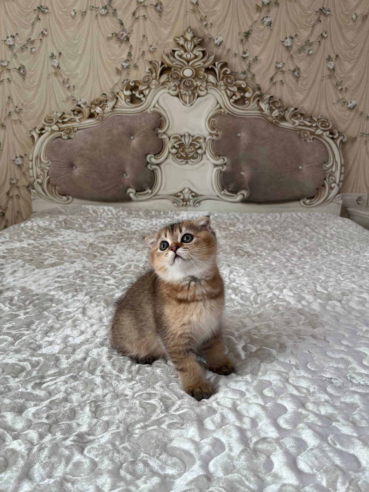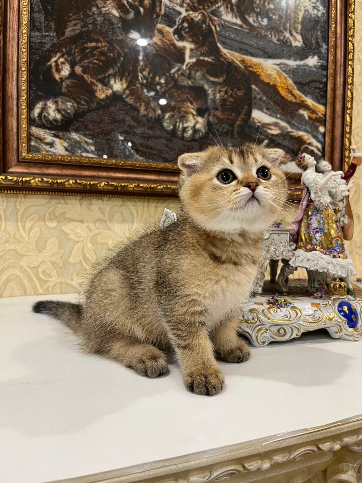 Маленький принц із золотим хутром і оксамитовим поглядом. Продається неймовірний хлопчик шотландський висловушка Scottish Fold в дорогому надзвичайно красивому забарвленні Золота шиншила. Котусик справжнє втілення ніжності, спокою й тепла. Малюк в шикарному крупному породному, відмінному типі, коротка набита шерсть, яскравий соковитий колір, підпушок – персикового кольору, відмінний без дефектів хвіст, великі обведені очі, червоний обведений носик. Котик прямий носій золота та срібла! Не мітяща лінія!-особливість, яка закладена на генетичному рівні і є нашою однією з достойностей і переваг!
