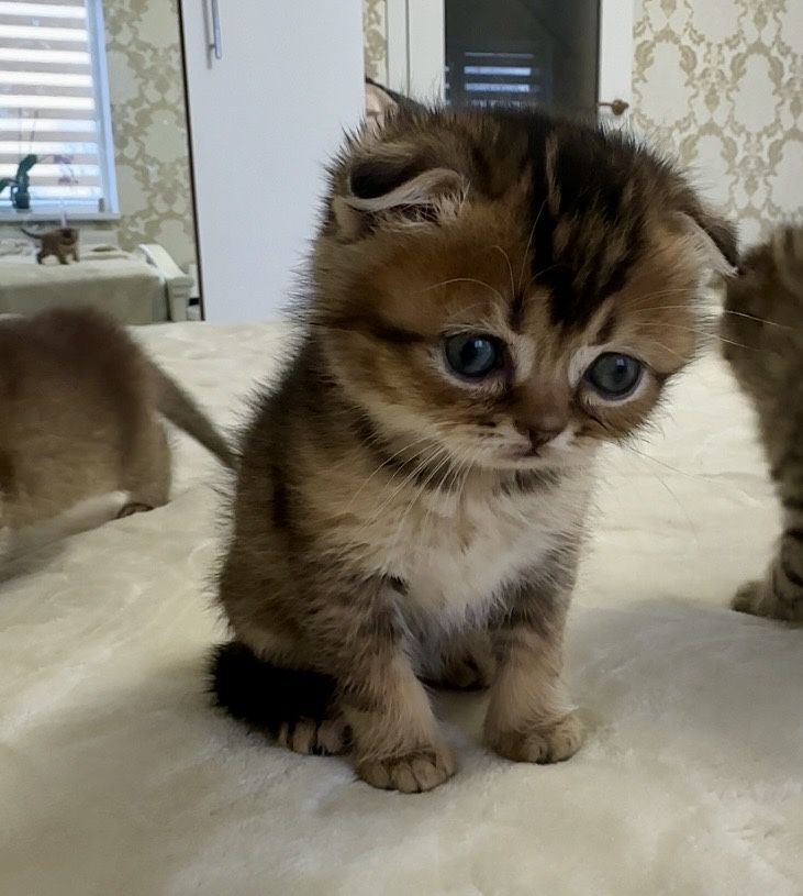 Шотландський котик, дуже красивого забарвлення, шубка плюшева та м’яка. Активний, скоттиш-фолд, чистокровний. Їсть домашню їжу та сухий корм, привчений до лотка. Народився 13.12.