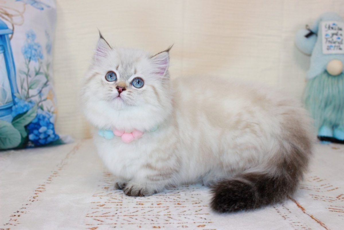 Характер та навички: Кішечка надзвичайно ласкава, грайлива та контактна. Вона дуже любить людей, обожнює увагу та смачну їжу. Попри особливості породи, дівчинка дуже швидка, спритна та активно стрибає. Вона — справжня особистість, яка подарує вам море позитиву.