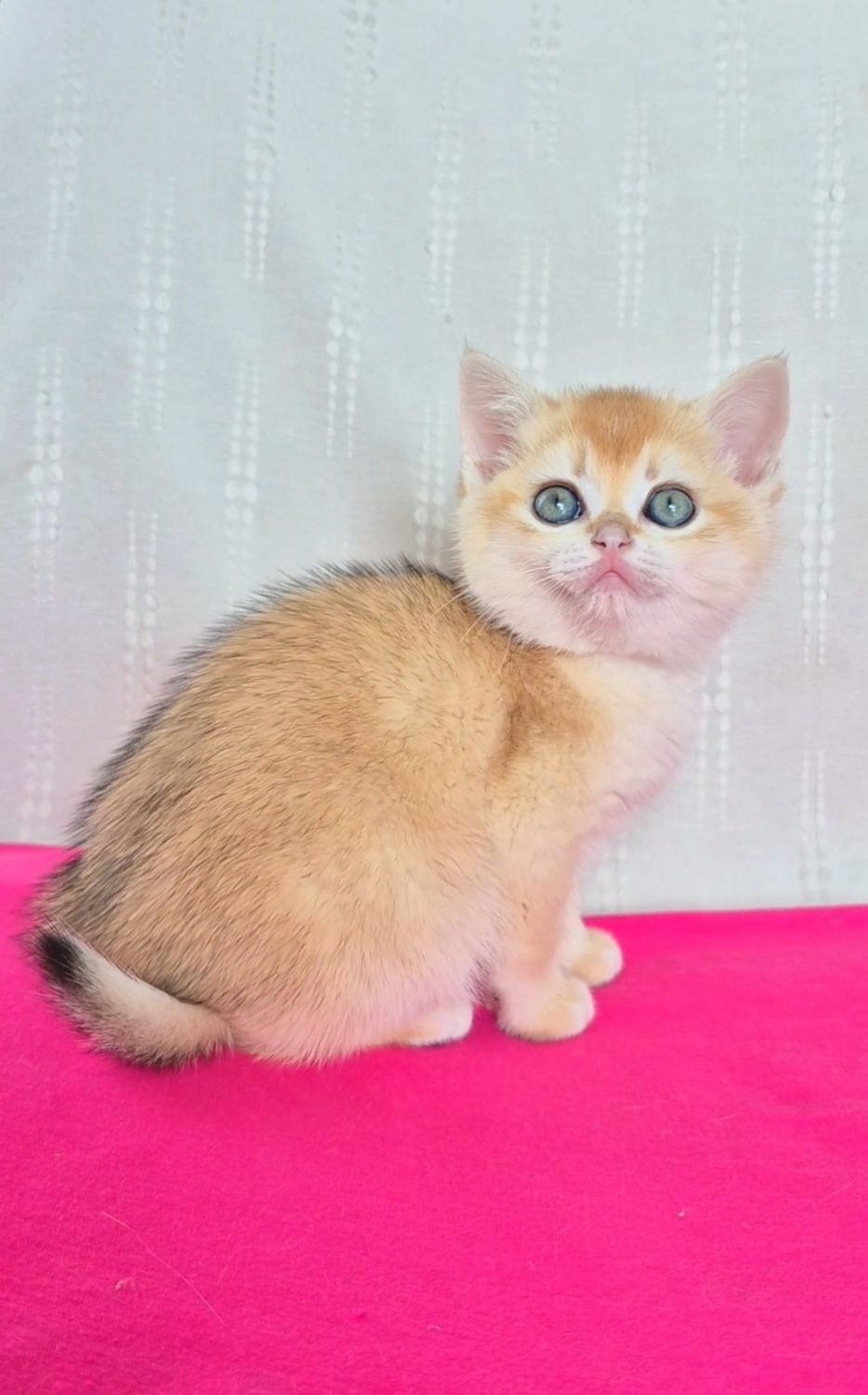 Дуже гарна кішечка золота шиншила. Має великі виразні оченята, та рідкий окрас ny11. Від її погляду неможливо відірватися. Тато і мама обидва окрасу золота шиншила.