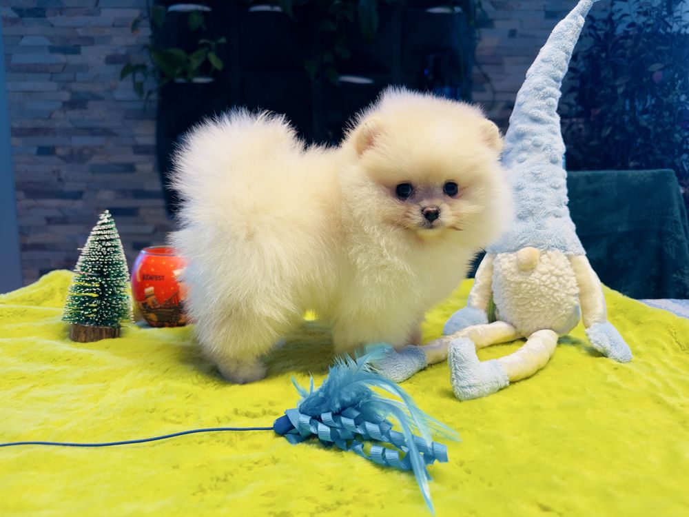 Пропонується до продажу розкішний хлопчик померанського шпіца в типі «ведмедик». Малюк має чудову густу шерсть, гарний екстер’єр та росте в домашніх умовах.
