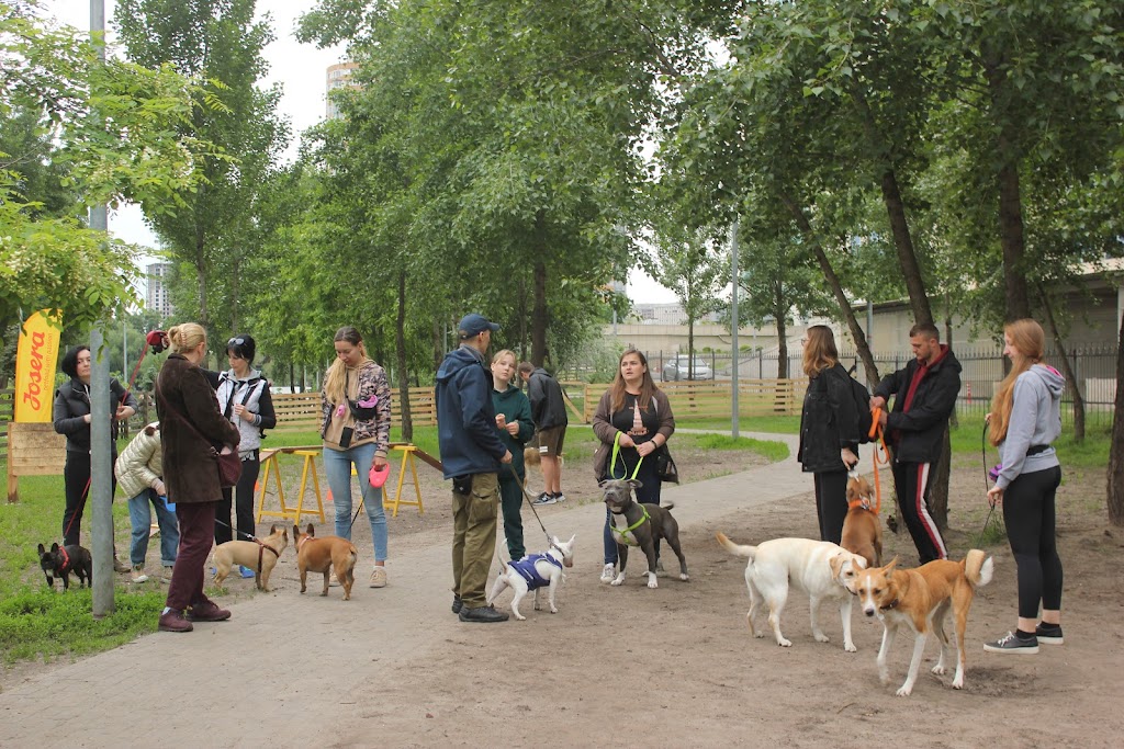 Собачий парк на вулиці Юрія Шумського — одна з найулюбленіших локацій у Києві для активного відпочинку домашніх тварин. Парк вирізняється великою територією, численними доріжками та тінню від дерев, що створює відчуття лісу; є лавочки і навіть миски для води. Власники цінують простір для бігу та можливість спілкування собак, тож це відмінне місце для ранкових і вечірніх прогулянок.