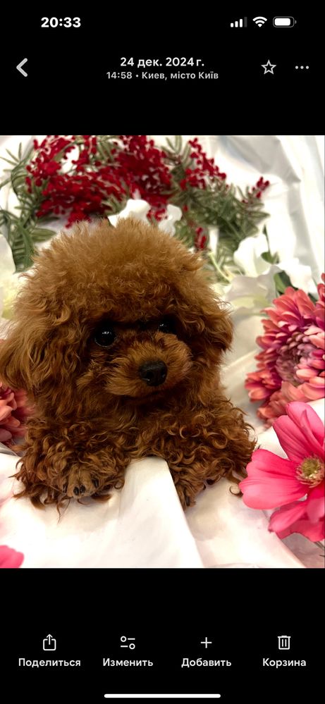 Розплідник «Perle de France» пропонує цуценя породи Той-пудель (тікап) шоу-класу. Хлопчик має яскраве забарвлення Red brown та щільну густу шерсть.