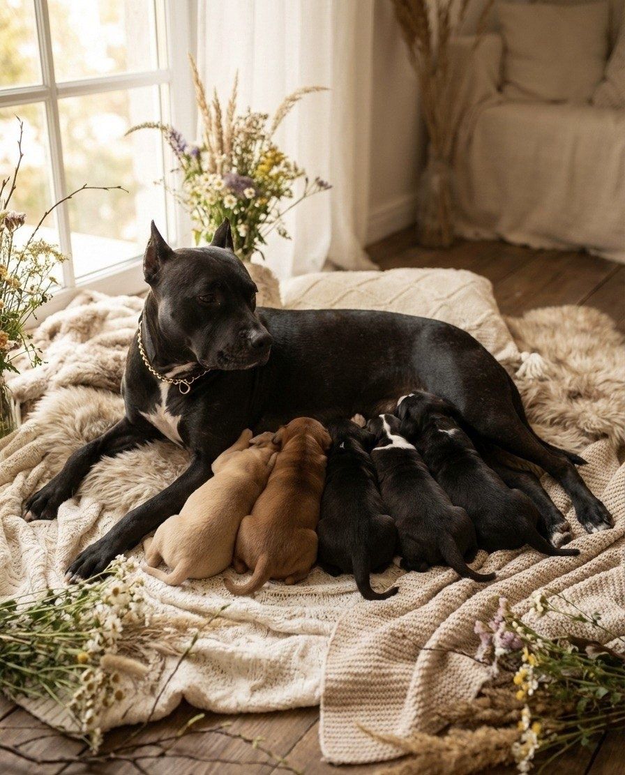 Чистокровні батьки: Мама — чистокровна, перша вагітність (краще відновлення та здорове потомство). Тато — чистокровний Американський пітбультер’єр.