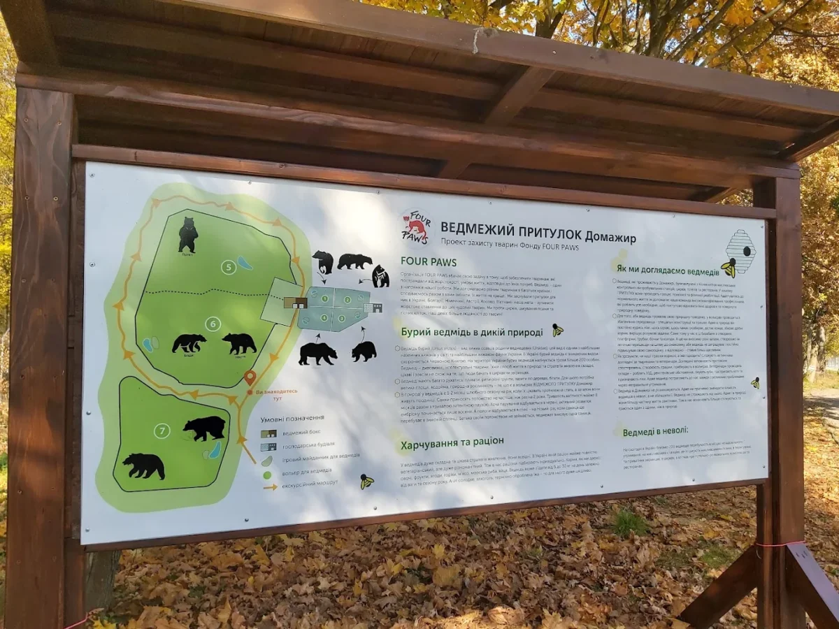 ВЕДМЕЖИЙ ПРИТУЛОК “Домажир” - це унікальний реабілітаційний центр, де в умовах, наближених до природних, проживаютьбурі ведмеді, їх ряують із тісних кліток мисливський притравлювальних станцій, пересувних звіринців, цирків, готелів та ресторанів. Саме тут у пртулку тварини проходять процес реабілітації та відновлення. Завітавши у притулок, ви зможете не тільки побачити на власні очі життя бурих ведмедів, а й відвідати цікаві екскурсії. На території також працює Сувенріний магазин та кафе “Мед і Ягода”.