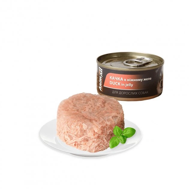 Консервований корм AnimAll у вигляді ніжних шматочків м’яса у желе розроблений спеціально для дорослих собак. Він має привабливий аромат і яскраво виражені смакові якості. Консерви зі смаком м’яса качки сподобаються кожному хвостатому вихованцю, незалежно від породи. Виготовлений із натуральних та свіжих інгредієнтів, корм абсолютно безпечний і не викличе алергічних реакцій у вашого домашнього улюбленця. Вітаміни, корисні речовини й мінерали, а також таурин, що входять до його складу, сприяють зміцненню імунітету собаки, сприятливо впливають на зір і роботу серцево-судинної системи, покращують травлення.