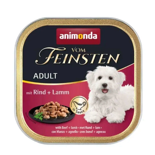 Vom Feinsten Adult with Beef + lamb – вологий корм з яловичиною і ягнятинию для собак, які люблять сюрпризи. Він захоплює улюбленців ніжними шматочками м’яса, що тануть у роті та апетитним соусом, який песики злизують до останньої краплини.