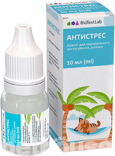 Антистрес — це ефективні та безпечні ліки для зняття стресу, тривожності та страху у собак і котів. Основним активним інгредієнтом препарату є фенібут — ноотропна і протитривожна речовина. Завдяки своїм анксіолітичним, протисудомним, міорелаксуючим та седативним властивостям Антистрес добре переноситься улюбленцями, допомагає їм себе розслабити та навіть сприяє поліпшенню якості сну.
