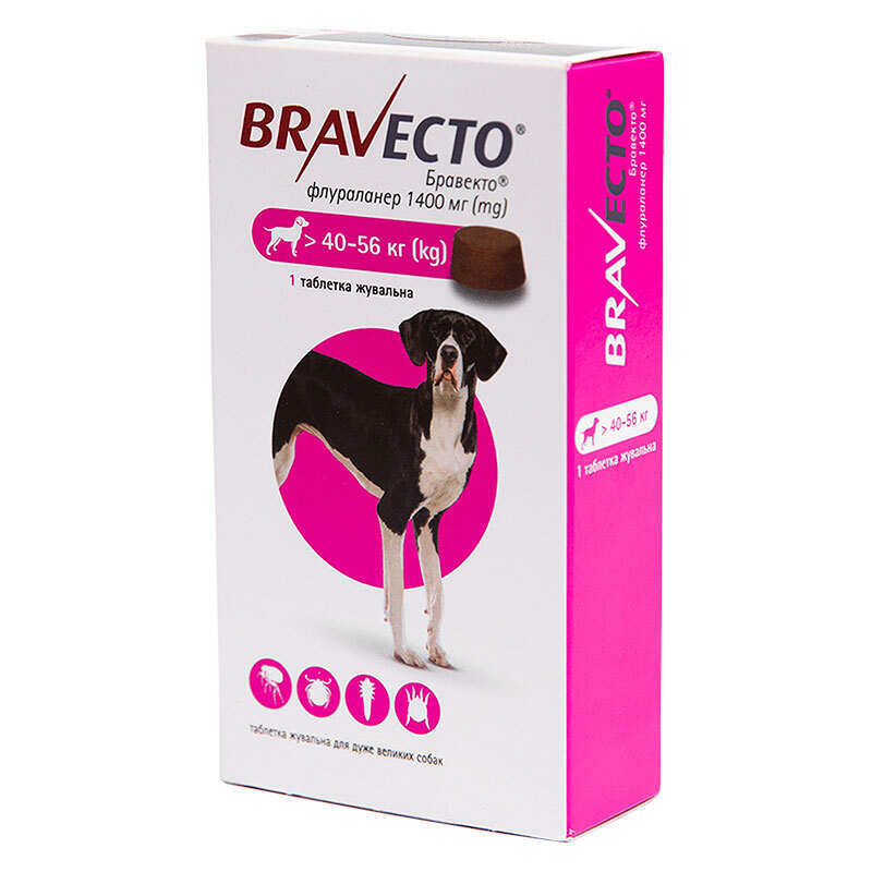 Жувальні таблетки від бліх і кліщів Бравекто для собак, 40-56 кг 1400 мг
